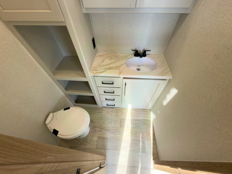 A: The Sierra 389HBFL pairs a front living layout with a bonus room that can adapt to guests, kids, or a home office. It’s designed for seasonal campers who want structure, space, and flexibility.