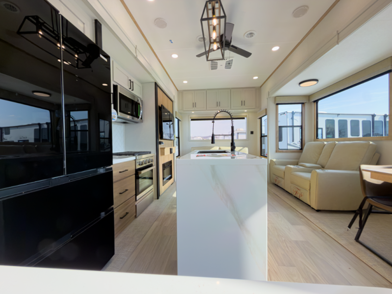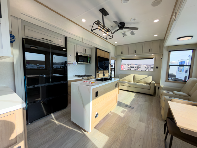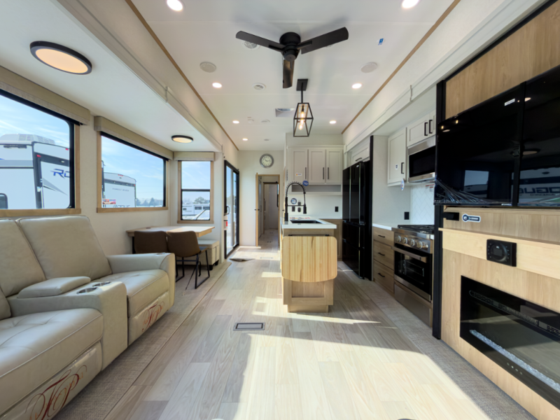 The 389HBFL stands out for campers who want more than just one big room. Its front living layout and bonus space make it easier to host guests, work remotely, or camp comfortably for weeks at a time.