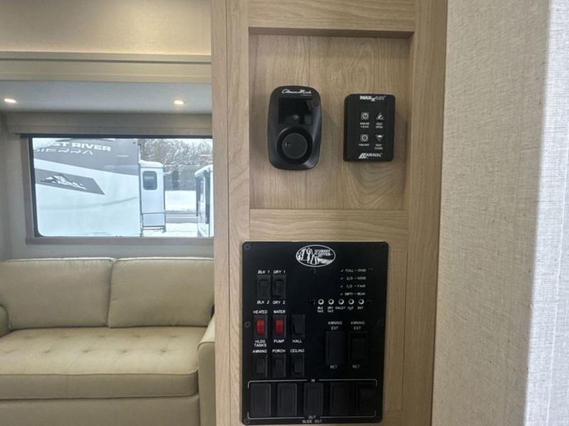 With each Sierra Destination Trailer by Forest River you will enjoy many luxurious features, such as crown molding over the kitchen cabinets, solid surface kitchen countertops, a memory foam mattress, plus so much more. The extra large picture windows throughout let natural light in and provide beautiful outdoor views, and each model includes three or more slides for added interior space. You'll find many exterior conveniences, like the porch light with an interior switch, the rain gutters with extra long drip spouts to prevent black streaking, and an electric awning with LED light strip, plus more! You will stay comfortable year around with dual 15,000 A/C units plus each model is constructed with an Underbelly Armor for better protection and insulation!
