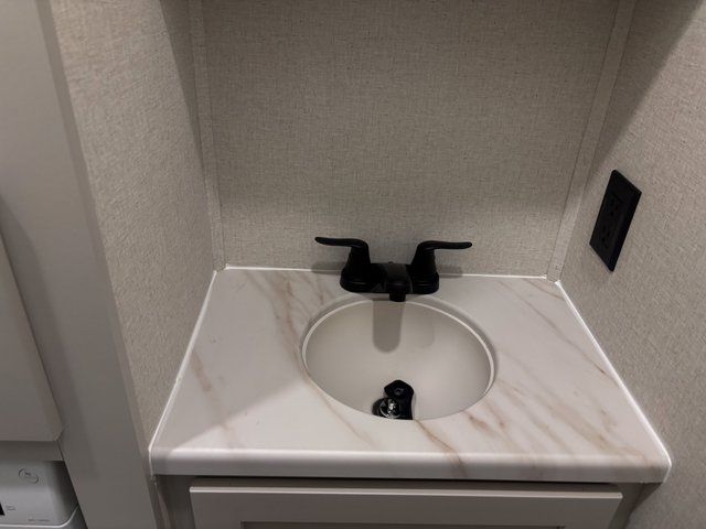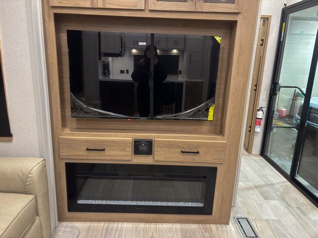The open living area is made for comfort and connection. Settle in on the theater seating or tri-fold hide-a-bed sofa, perfectly positioned across from the cozy fireplace—ideal for relaxing after a long day. A dedicated desk with chair makes working remotely or managing travel plans easy and comfortable.