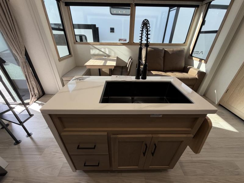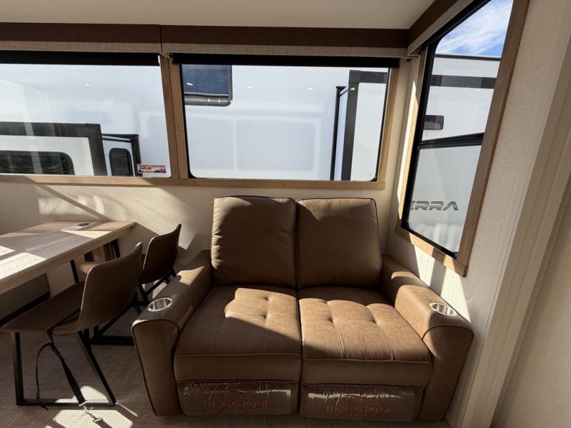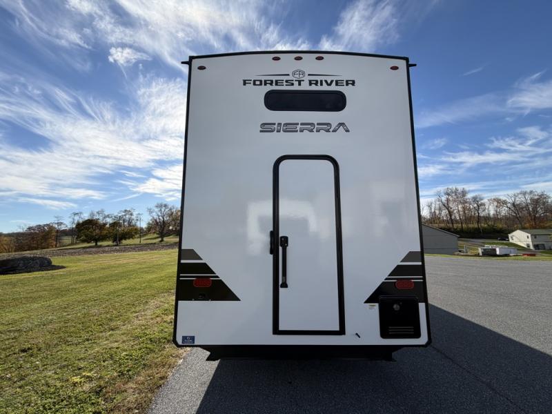 With each Sierra Destination Trailer by Forest River you will enjoy many luxurious features, such as crown molding over the kitchen cabinets, solid surface kitchen countertops, a memory foam mattress, plus so much more. The extra large picture windows throughout let natural light in and provide beautiful outdoor views, and each model includes three or more slides for added interior space. You'll find many exterior conveniences, like the porch light with an interior switch, the rain gutters with extra long drip spouts to prevent black streaking, and an electric awning with LED light strip, plus more! You will stay comfortable year around with dual 15,000 A/C units plus each model is constructed with an Underbelly Armor for better protection and insulation!