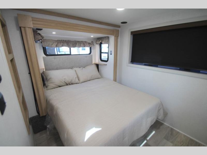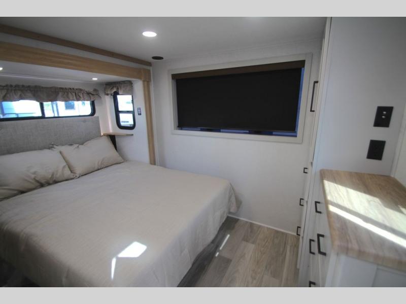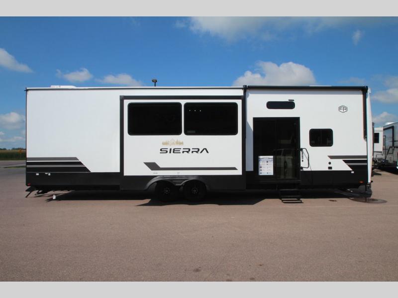 With each Sierra Destination Trailer by Forest River you will enjoy many luxurious features, such as crown molding over the kitchen cabinets, solid surface kitchen countertops, a memory foam mattress, plus so much more. The extra large picture windows throughout let natural light in and provide beautiful outdoor views, and each model includes three or more slides for added interior space. You'll find many exterior conveniences, like the porch light with an interior switch, the rain gutters with extra long drip spouts to prevent black streaking, and an electric awning with LED light strip, plus more! You will stay comfortable year around with dual 15,000 A/C units plus each model is constructed with an Underbelly Armor for better protection and insulation!