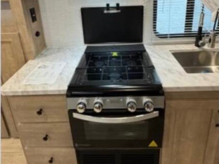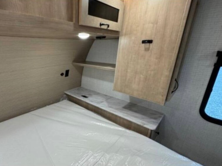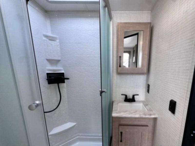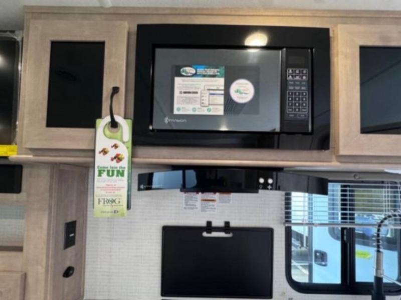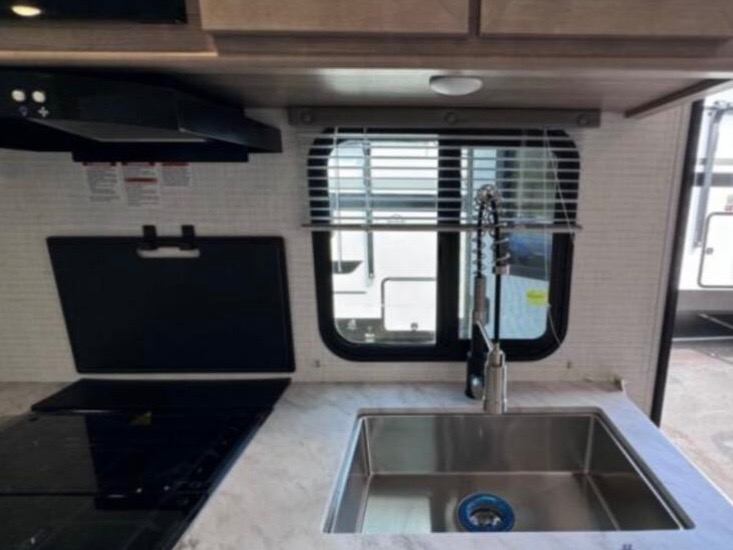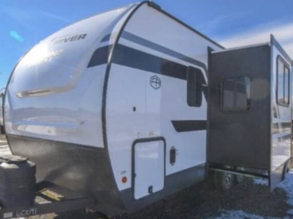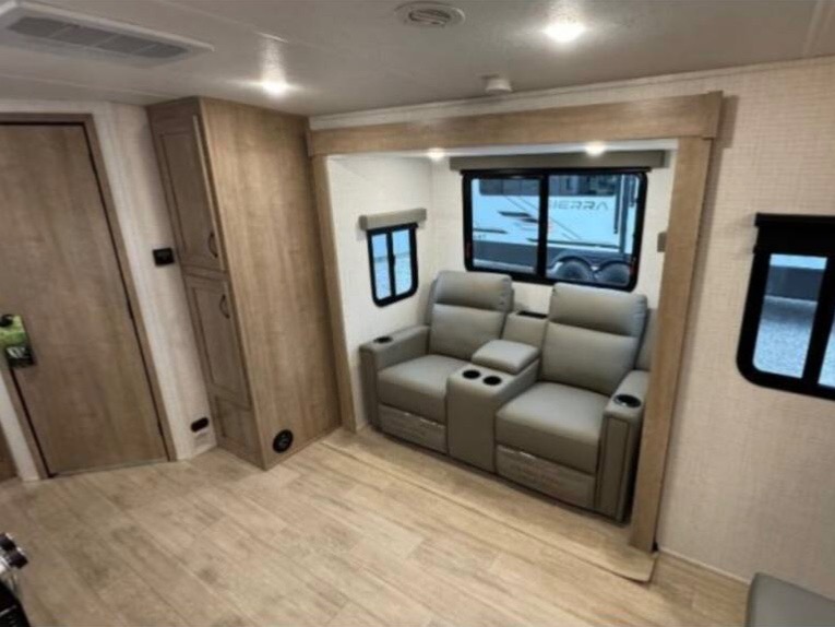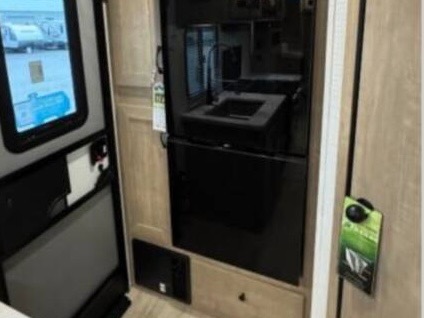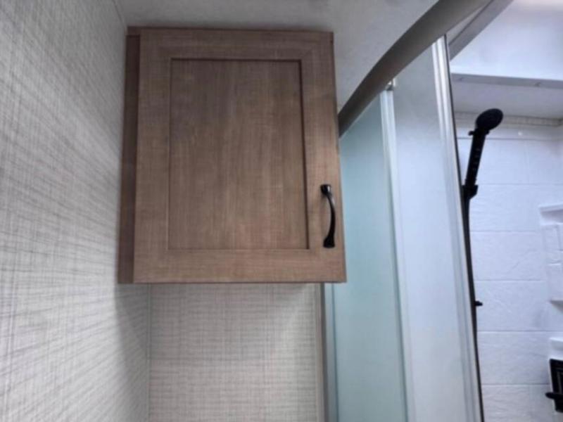 This trailer allows you to camp in comfort at your favorite RV sites thanks to the slide out sofa, and the front queen Murphy bed to sleep on with dual wardrobes to store your clothing! When the bed is put away, you can relax on the jack-knife sofa with storage below for extra blankets or board games. The galley kitchen includes amenities such as a microwave and cooktop to cook meals, plus an 11 cu. ft. electric refrigerator and pantry for food storage. The rear corner full bath offers a space-savings radius shower and linen storage, and there is an entry closet to keep the main area tidy.