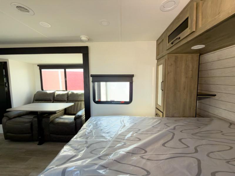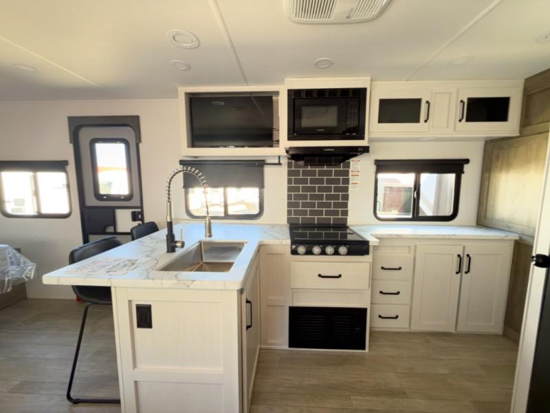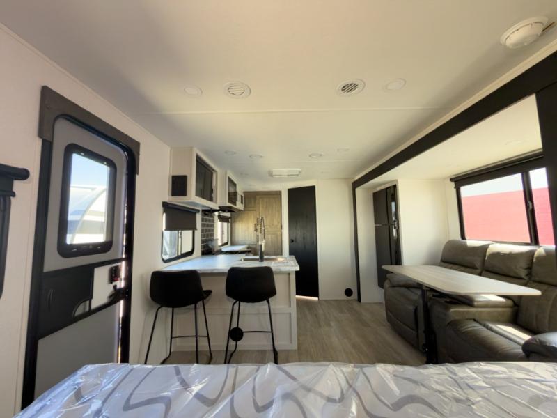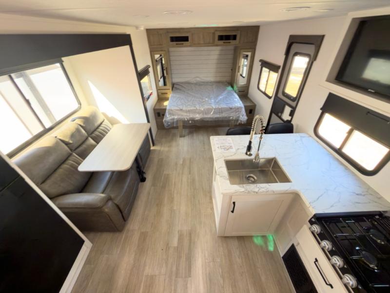 Many bunkhouse trailers feel cramped once loaded. The 232UD balances double bunks with a slide-out living area and outdoor kitchen, giving you defined zones instead of one crowded space.