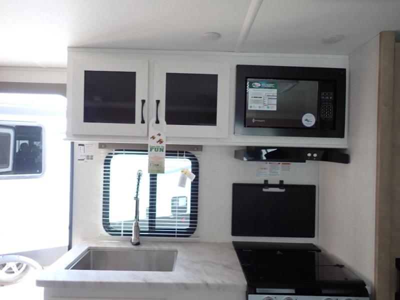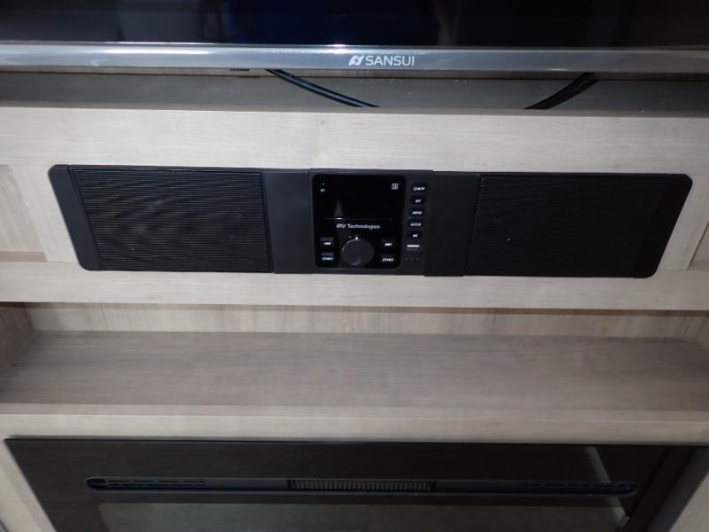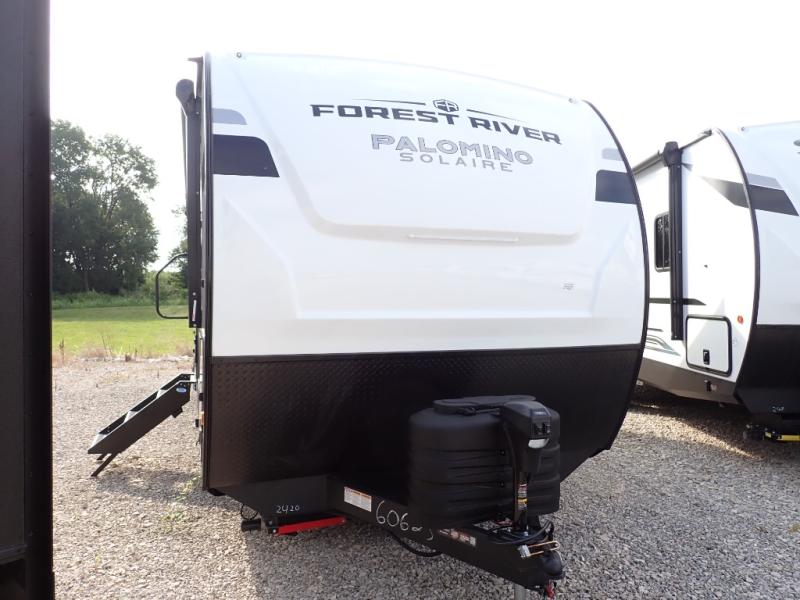 Each SolAire travel trailer by Palomino features a white gel coat exterior and an aluminum superstructure frame for lightweight towing. You will love having a power tongue jack for easy set up, plus slam latch baggage doors with magnets to make unloading easier than ever. There is also a power awning with LED lights and aluminum wheels included on the exterior. Each SolAire is constructed to last with Azdel composite, a fully laminated rear wall and roof, plus a fully enclosed and heated underbelly. The interior includes roller shades and kitchen backsplash, USB ports to keep your electronics charged, a Bluetooth stereo with speakers, and many more stand-out features!