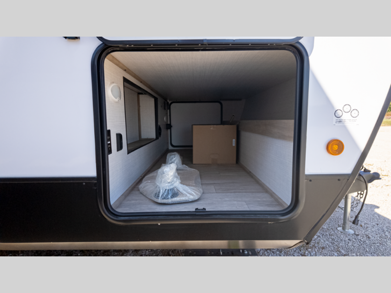 - Camping Features: LED-lit power awning, Azdel composite walls, enclosed heated underbelly, power tongue jack, USB ports, fireplace (optional), 200 W solar panel