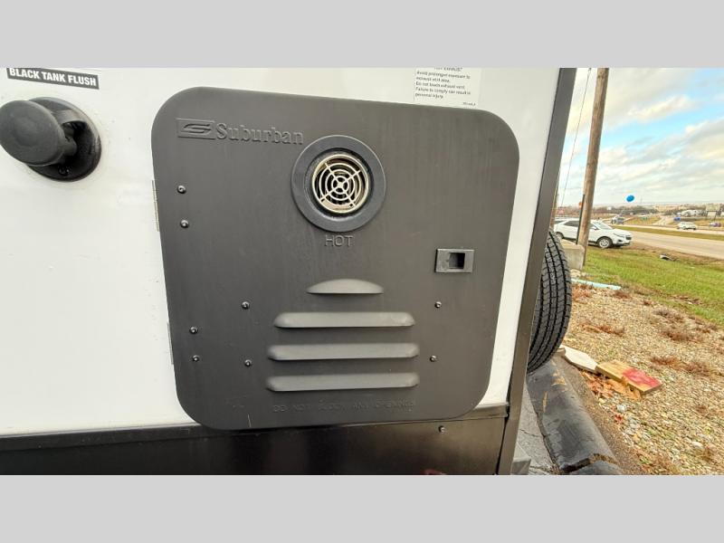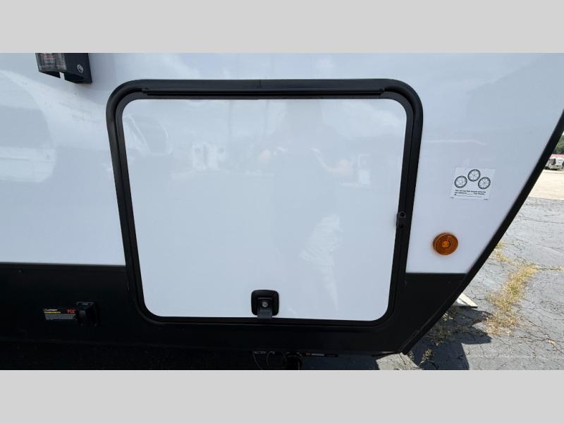 Each Solaire travel trailer by Forest River is constructed with a fully enclosed/heated underbelly for added protection against the elements, plus a fully laminated roof and rear wall for durability. The slam latch baggage doors with magnets will make it easier than ever to pack up your camp gear, and the power awning with LED lights will provide shade during the day and inviting ambiance at night. Head inside to enjoy the roller shades, smoked glass kitchen cabinet doors, stainless-steel sink, and LED lights to keep your space well lit. Some of the available options include a bedroom A/C, a Wi-Fi booster, heated holding tanks, and more!