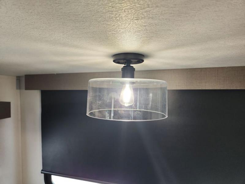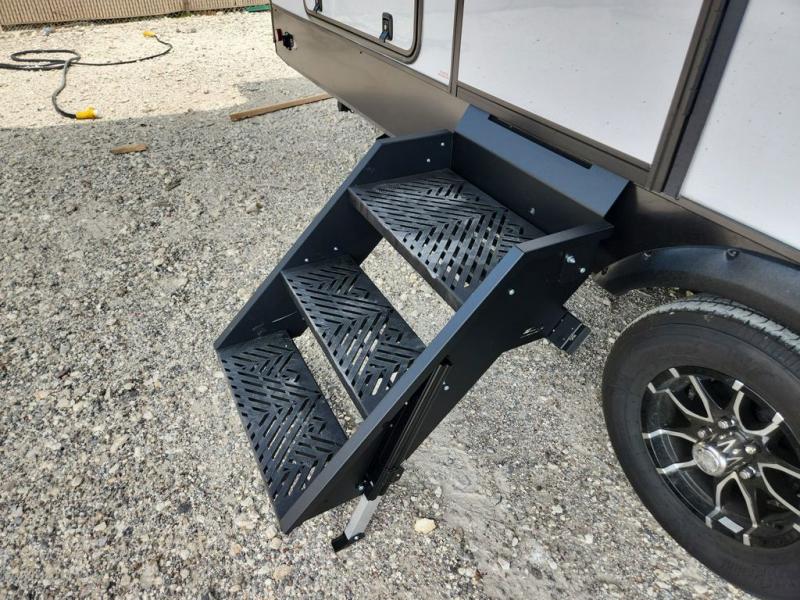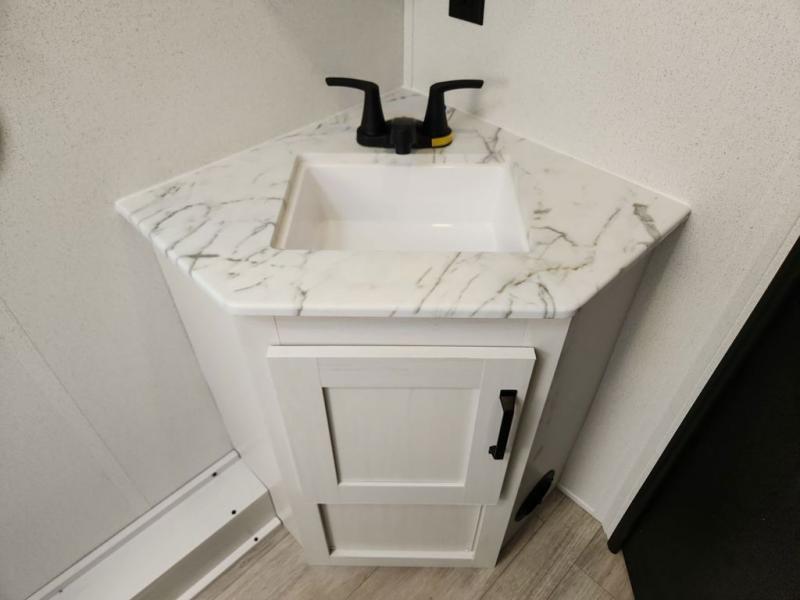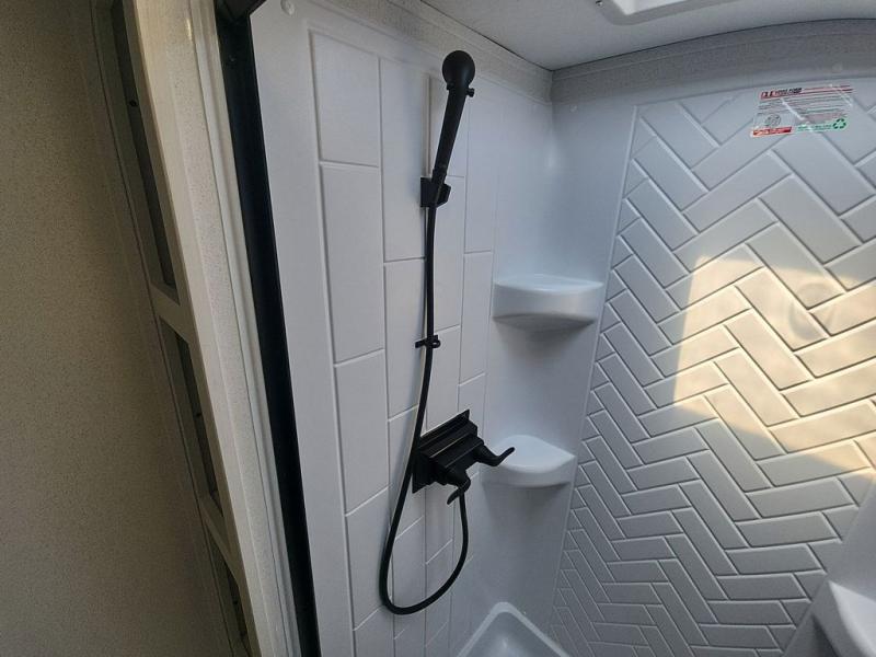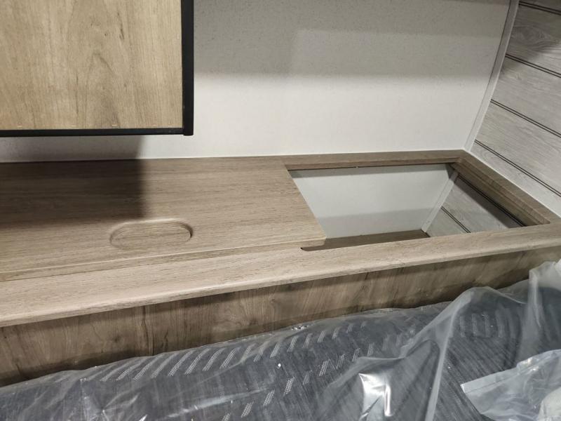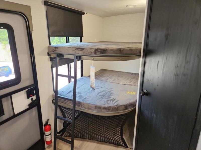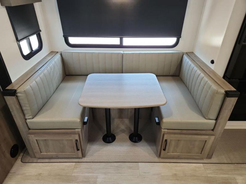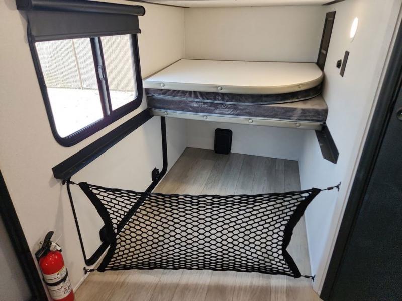Your friends and family will love camping with you in this trailer that offers sleeping space for eight with the queen bed, the double-size bunks and the U-shaped dinette once it is easily set up for sleeping space. The cook will love the full kitchen with its cooktop, microwave, electric refrigerator plus hidden pantry behind the entertainment center. A full bath with a 30" x 36" shower will let you freshen up each day, and you'll love having your own space in the front private bedroom!