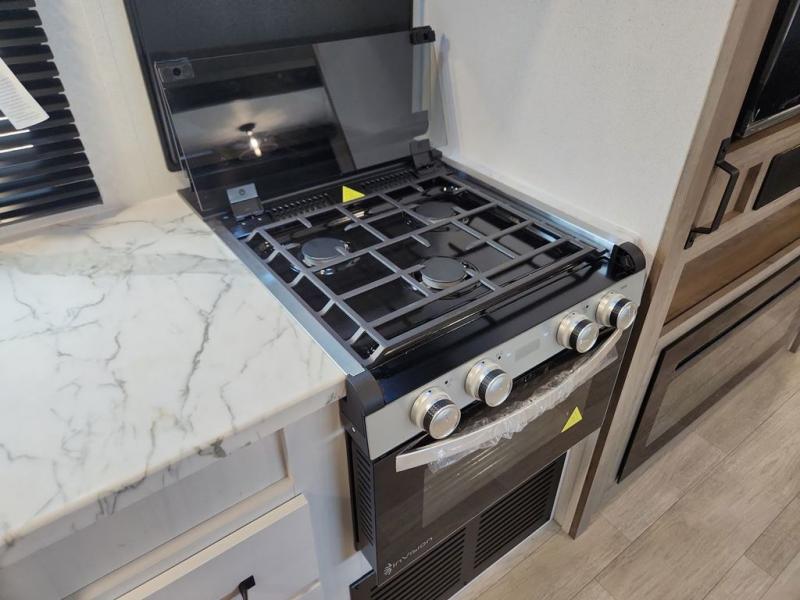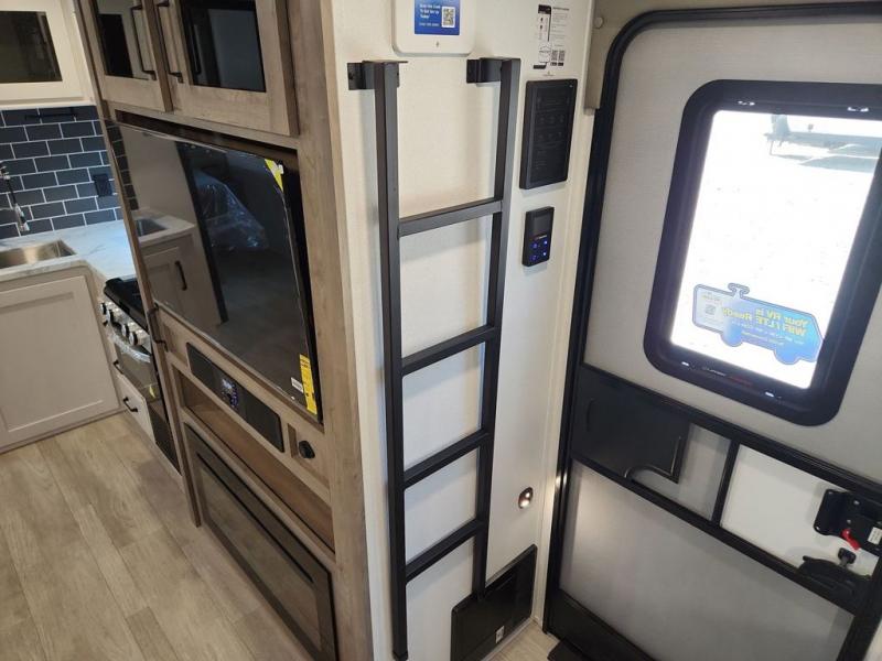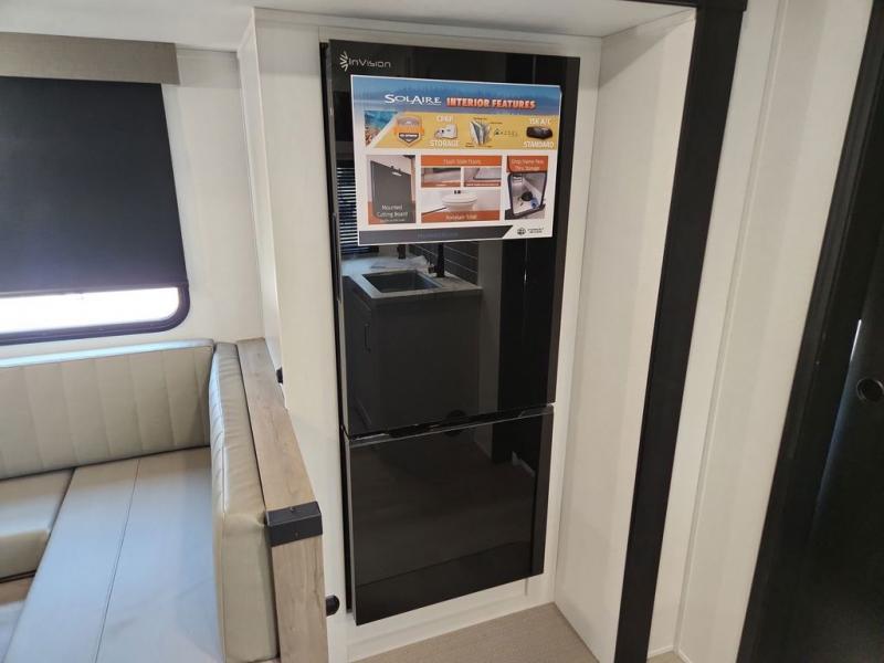 Each SolAire travel trailer by Palomino features a white gel coat exterior and an aluminum superstructure frame for lightweight towing. You will love having a power tongue jack for easy set up, plus slam latch baggage doors with magnets to make unloading easier than ever. There is also a power awning with LED lights and aluminum wheels included on the exterior. Each SolAire is constructed to last with Azdel composite, a fully laminated rear wall and roof, plus a fully enclosed and heated underbelly. The interior includes roller shades and kitchen backsplash, USB ports to keep your electronics charged, a Bluetooth stereo with speakers, and many more stand-out features!