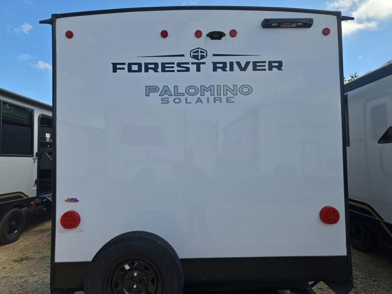 Each SolAire travel trailer by Palomino features a white gel coat exterior and an aluminum superstructure frame for lightweight towing. You will love having a power tongue jack for easy set up, plus slam latch baggage doors with magnets to make unloading easier than ever. There is also a power awning with LED lights and aluminum wheels included on the exterior. Each SolAire is constructed to last with Azdel composite, a fully laminated rear wall and roof, plus a fully enclosed and heated underbelly. The interior includes roller shades and kitchen backsplash, USB ports to keep your electronics charged, a Bluetooth stereo with speakers, and many more stand-out features!