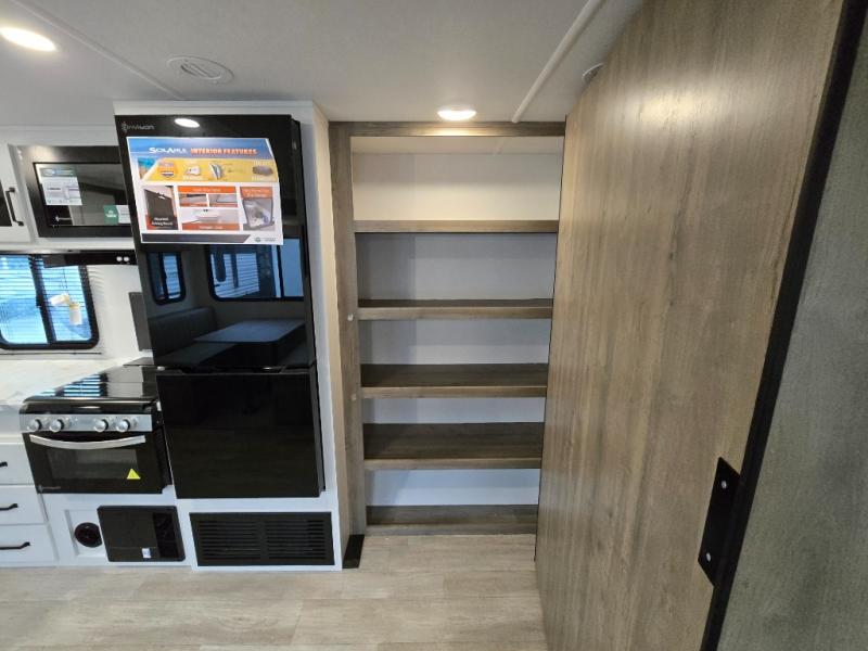 Each SolAire travel trailer by Palomino features a white gel coat exterior and an aluminum superstructure frame for lightweight towing. You will love having a power tongue jack for easy set up, plus slam latch baggage doors with magnets to make unloading easier than ever. There is also a power awning with LED lights and aluminum wheels included on the exterior. Each SolAire is constructed to last with Azdel composite, a fully laminated rear wall and roof, plus a fully enclosed and heated underbelly. The interior includes roller shades and kitchen backsplash, USB ports to keep your electronics charged, a Bluetooth stereo with speakers, and many more stand-out features!