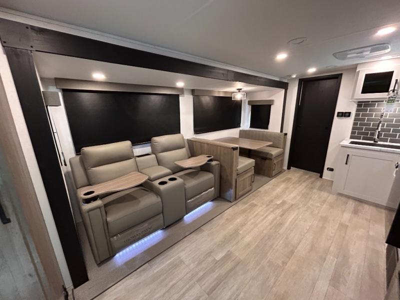 Rear Bathroom/ All Power Tongue Jack/ Hidden Pantry/Theatre Seating/ 200 Watt Solar Panel