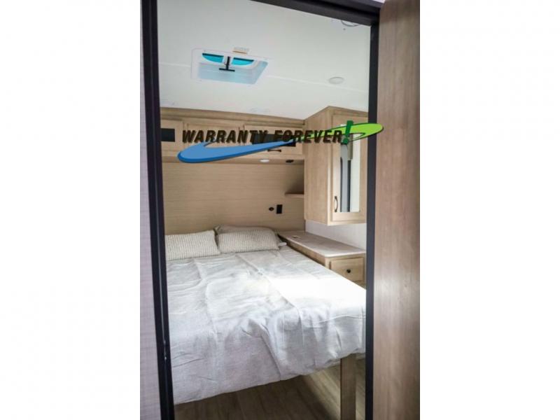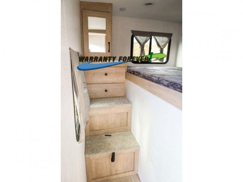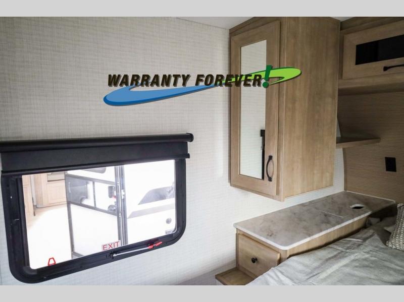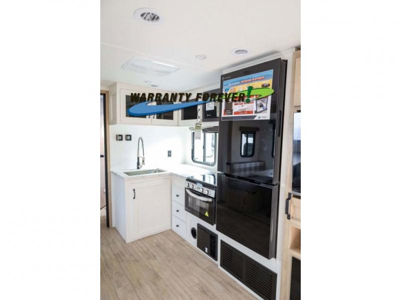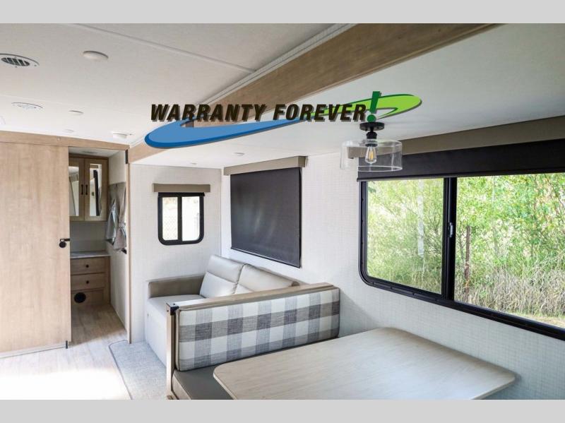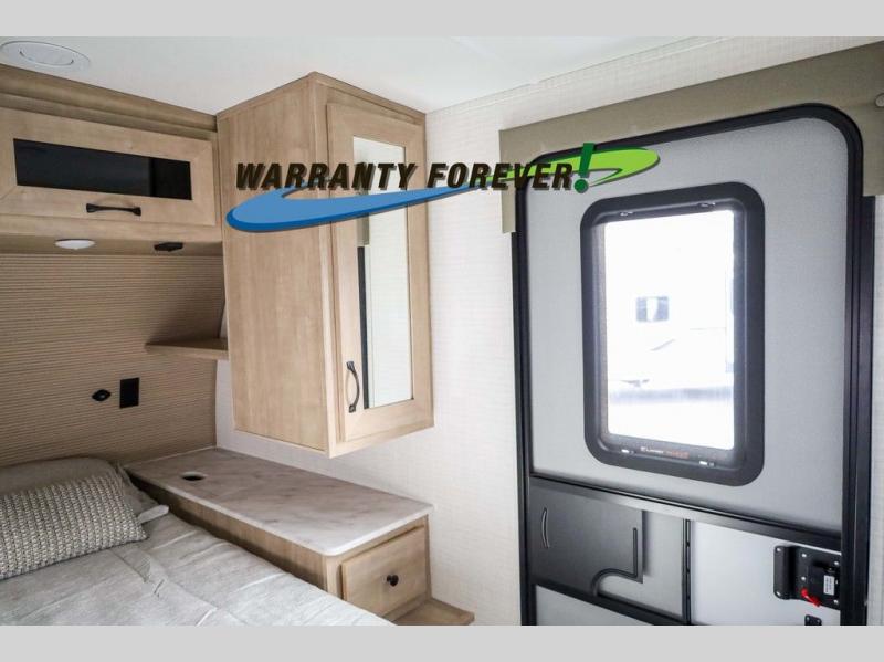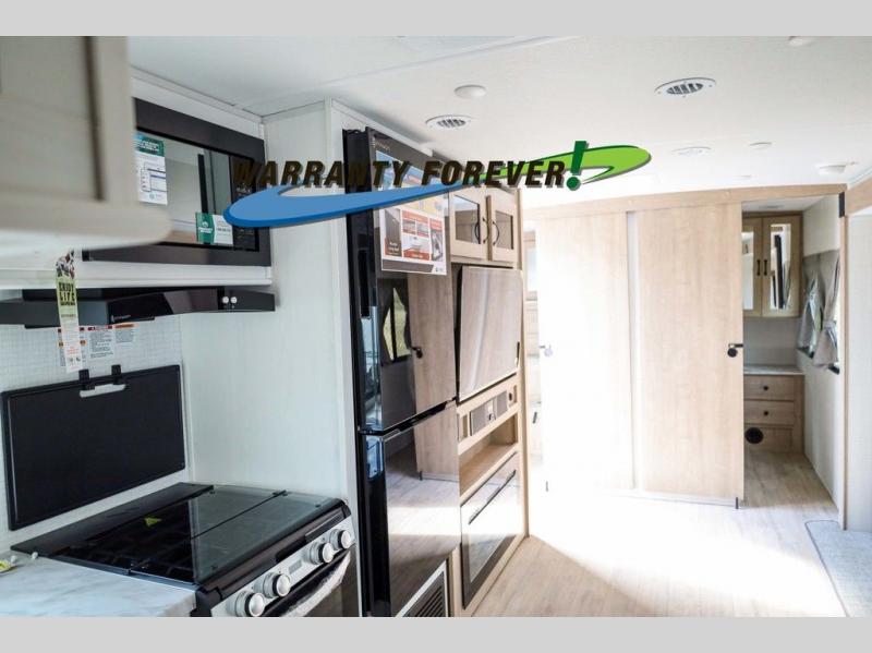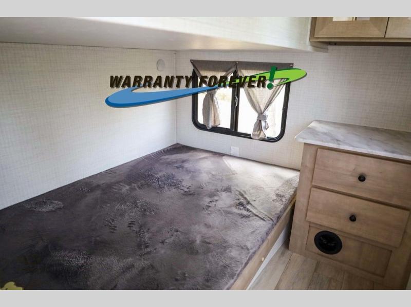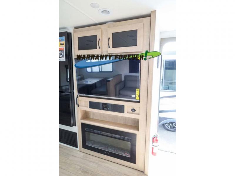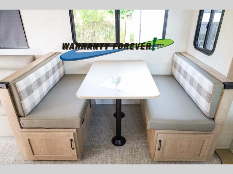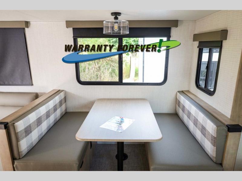 Whether you are looking for a bunkhouse, a private bedroom, or dual entry doors in your next RV, this one might just be the perfect fit with all those features! There are 45" x 72" bunk beds, each with their own wardrobe and their own private entry door, making it perfect for camping with older kids. The galley kitchen offers amenities such as a microwave, cooktop, an 11 cu. ft. refrigerator, and an L-shaped counter for preparing and serving meals. You will also find more storage, an entertainment center and a slide out sofa sleeper and booth dinette that offer more sleeping space when needed.