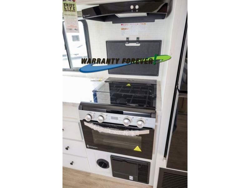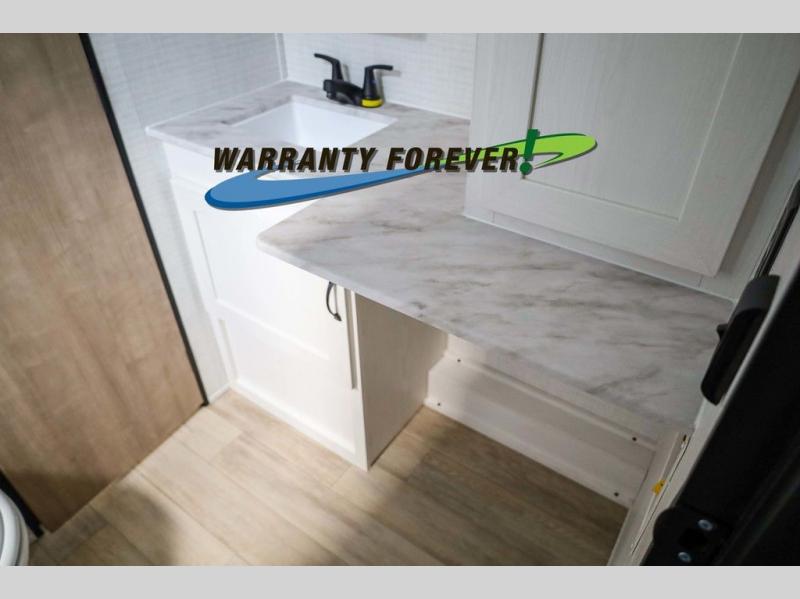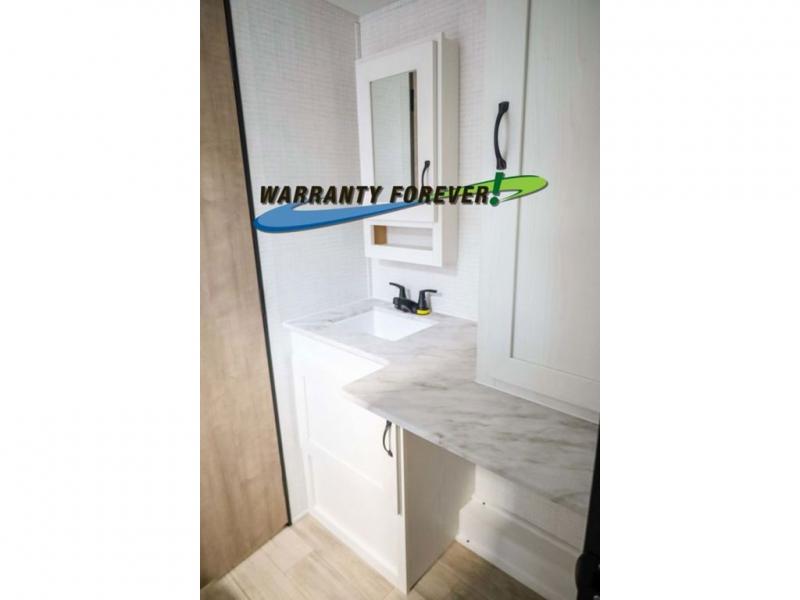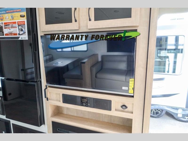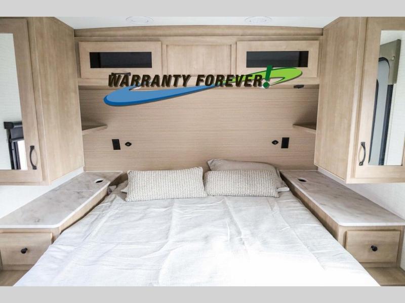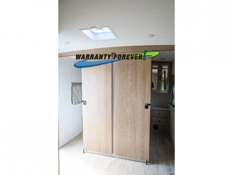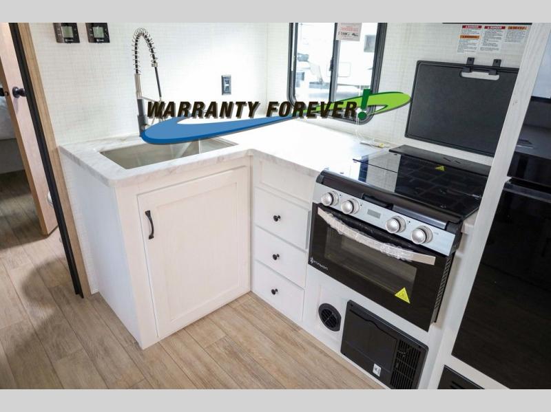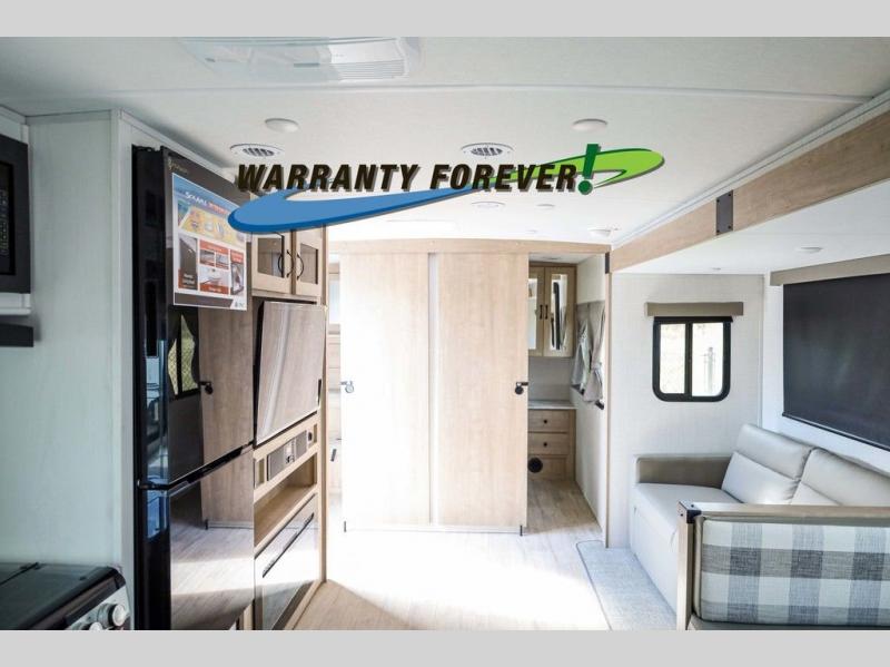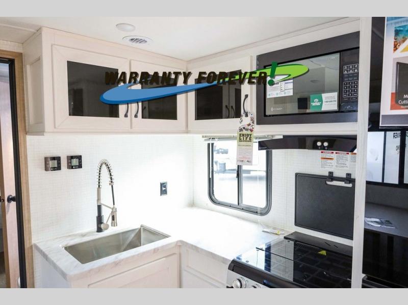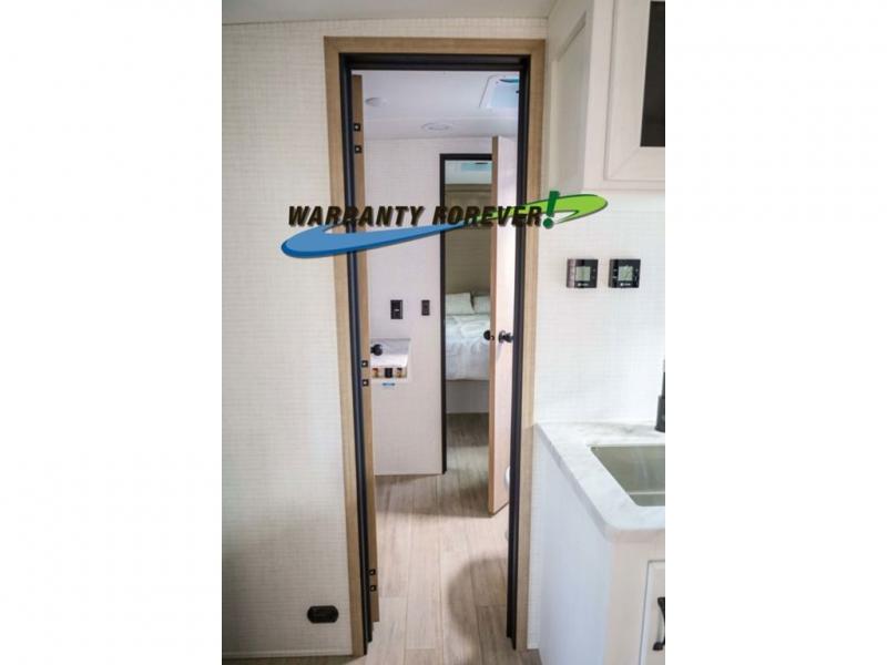 Whether you are looking for a bunkhouse, a private bedroom, or dual entry doors in your next RV, this one might just be the perfect fit with all those features! There are 45" x 72" bunk beds, each with their own wardrobe and their own private entry door, making it perfect for camping with older kids. The galley kitchen offers amenities such as a microwave, cooktop, an 11 cu. ft. refrigerator, and an L-shaped counter for preparing and serving meals. You will also find more storage, an entertainment center and a slide out sofa sleeper and booth dinette that offer more sleeping space when needed.