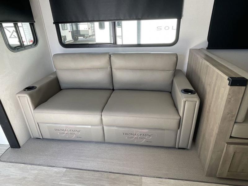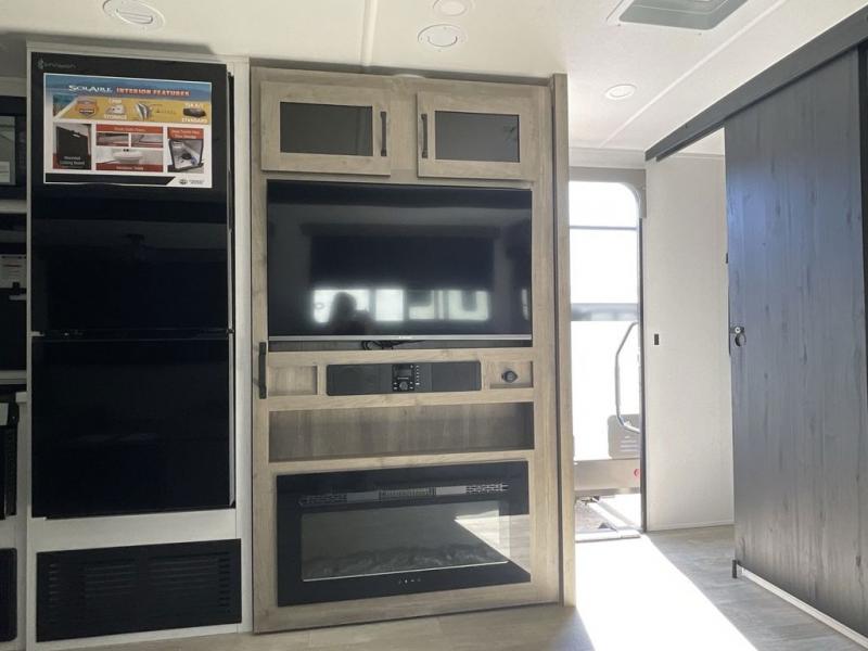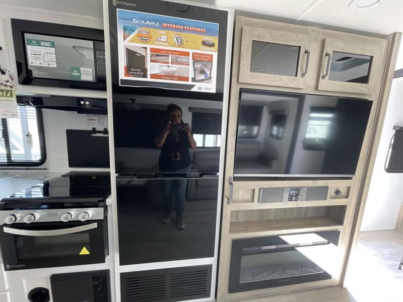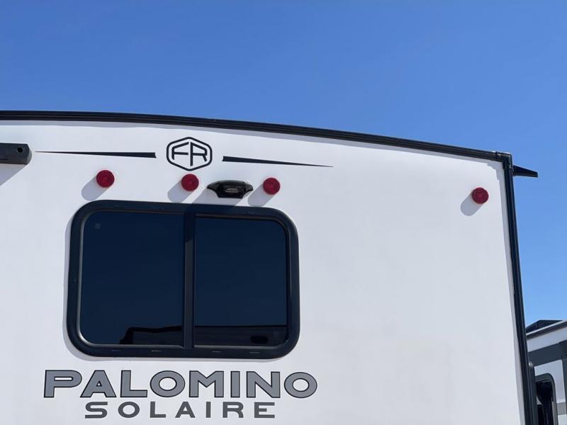 Each SolAire travel trailer by Palomino features a white gel coat exterior and an aluminum superstructure frame for lightweight towing. You will love having a power tongue jack for easy set up, plus slam latch baggage doors with magnets to make unloading easier than ever. There is also a power awning with LED lights and aluminum wheels included on the exterior. Each SolAire is constructed to last with Azdel composite, a fully laminated rear wall and roof, plus a fully enclosed and heated underbelly. The interior includes roller shades and kitchen backsplash, USB ports to keep your electronics charged, a Bluetooth stereo with speakers, and many more stand-out features!