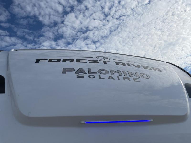 Each SolAire travel trailer by Palomino features a white gel coat exterior and an aluminum superstructure frame for lightweight towing. You will love having a power tongue jack for easy set up, plus slam latch baggage doors with magnets to make unloading easier than ever. There is also a power awning with LED lights and aluminum wheels included on the exterior. Each SolAire is constructed to last with Azdel composite, a fully laminated rear wall and roof, plus a fully enclosed and heated underbelly. The interior includes roller shades and kitchen backsplash, USB ports to keep your electronics charged, a Bluetooth stereo with speakers, and many more stand-out features!