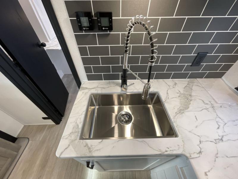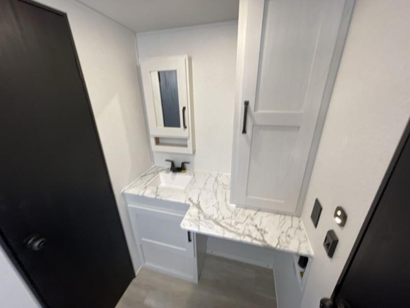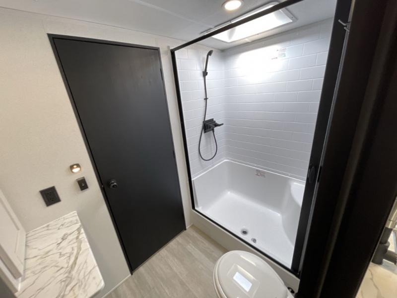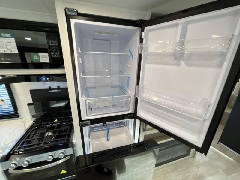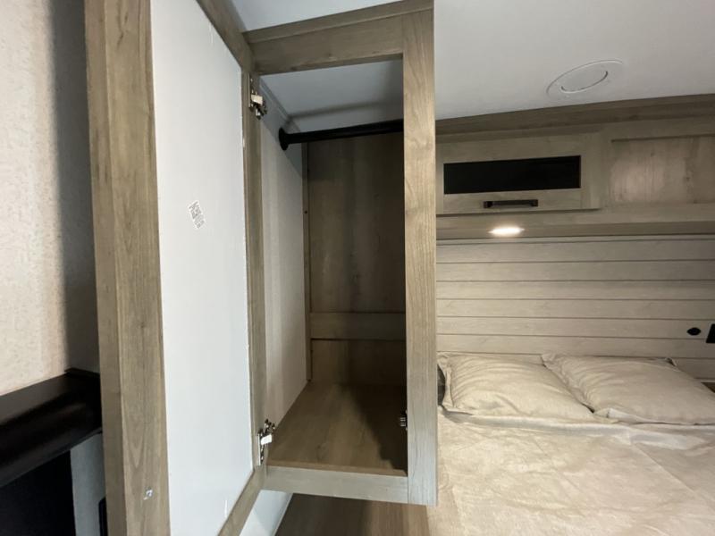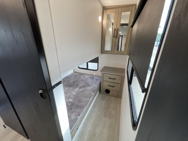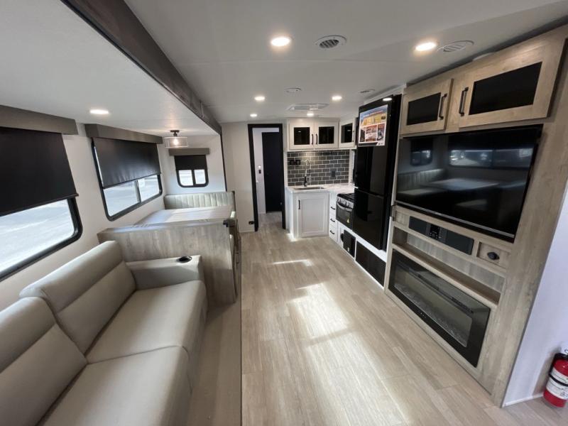 Whether you are looking for a bunkhouse, a private bedroom, or dual entry doors in your next RV, this one might just be the perfect fit with all those features! There are 45" x 72" bunk beds, each with their own wardrobe and their own private entry door, making it perfect for camping with older kids. The galley kitchen offers amenities such as a microwave, cooktop, an 11 cu. ft. refrigerator, and an L-shaped counter for preparing and serving meals. You will also find more storage, an entertainment center and a slide out sofa sleeper and booth dinette that offer more sleeping space when needed.