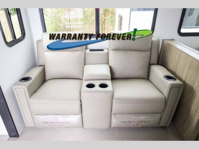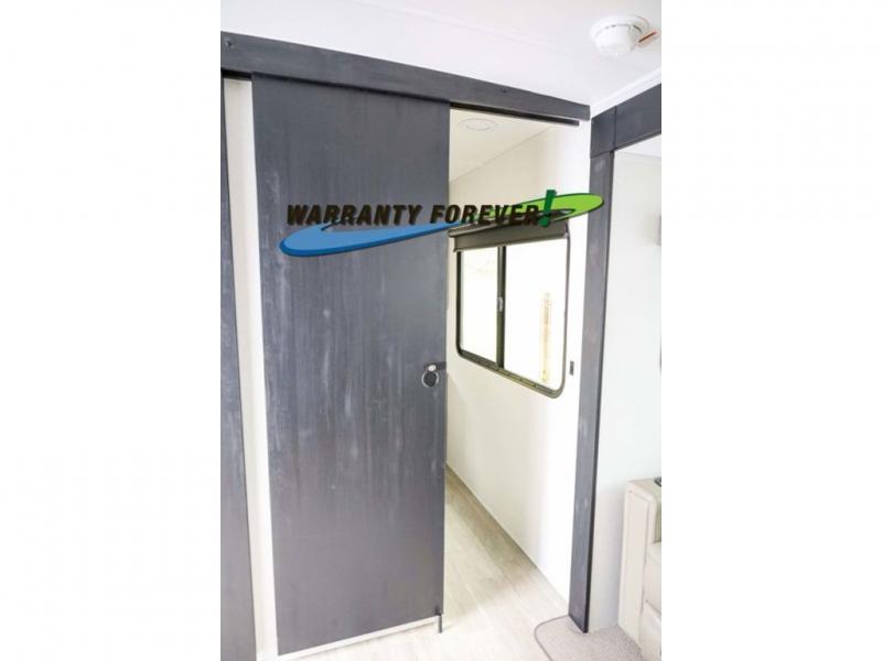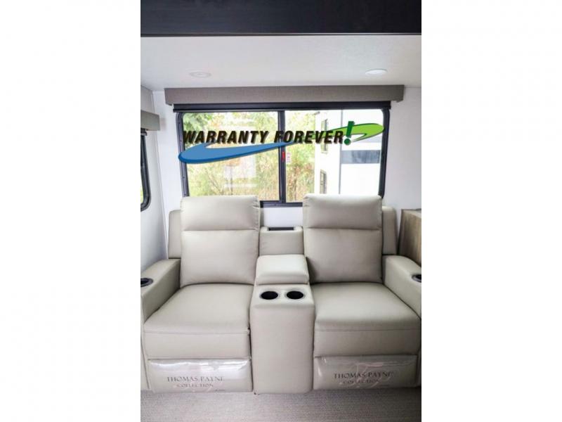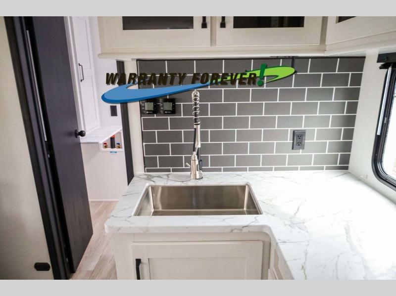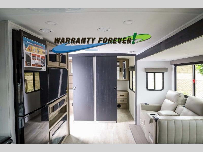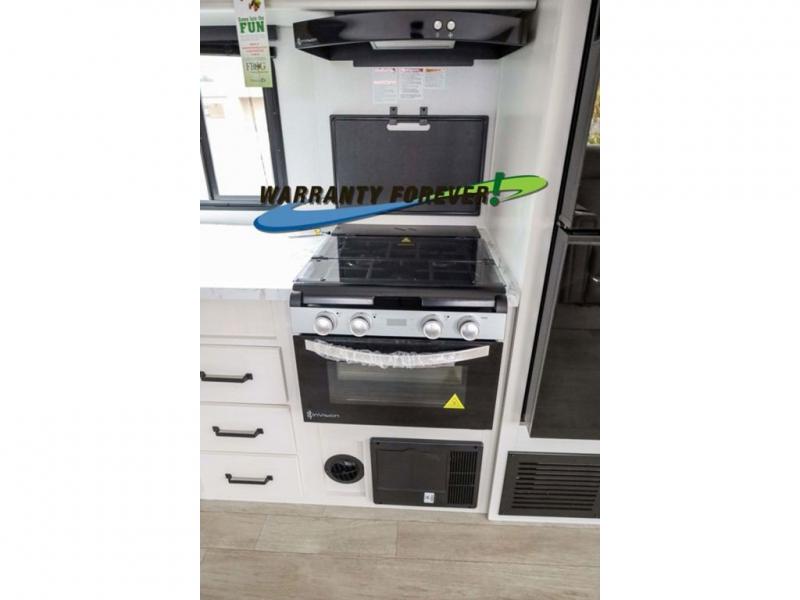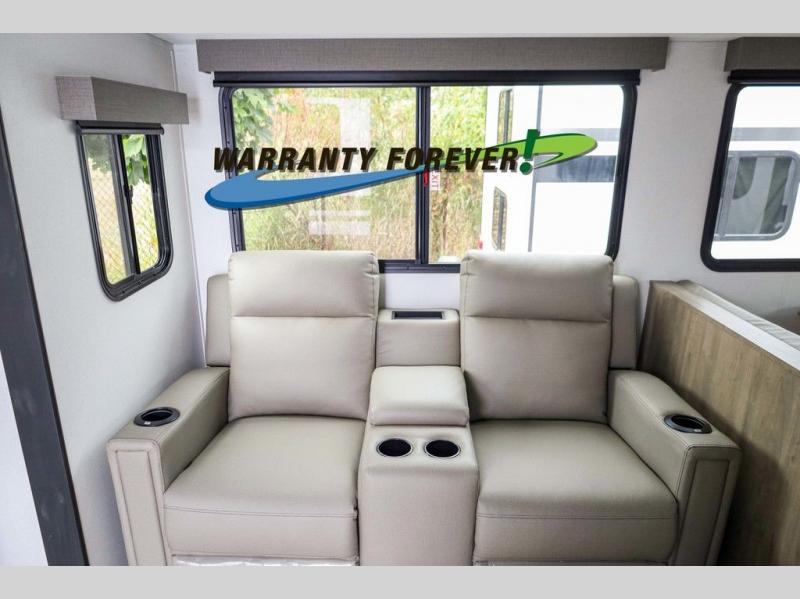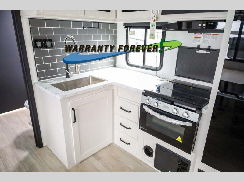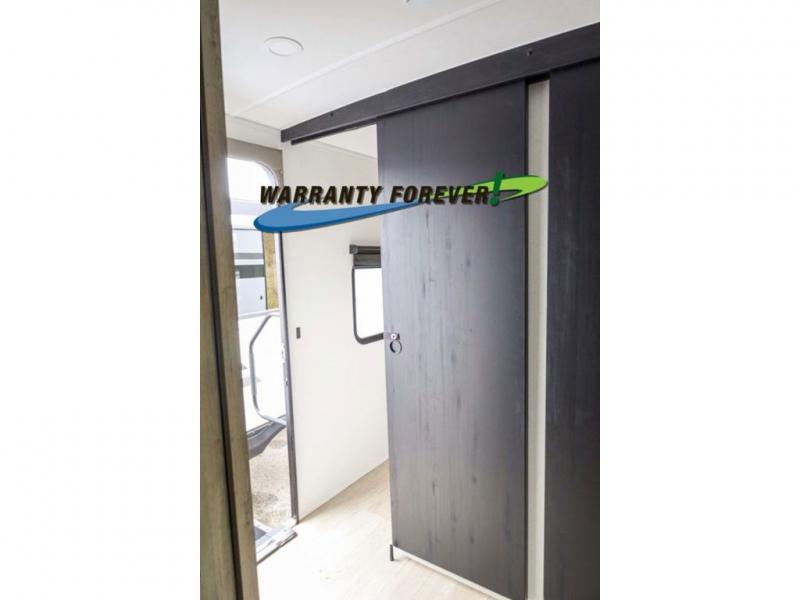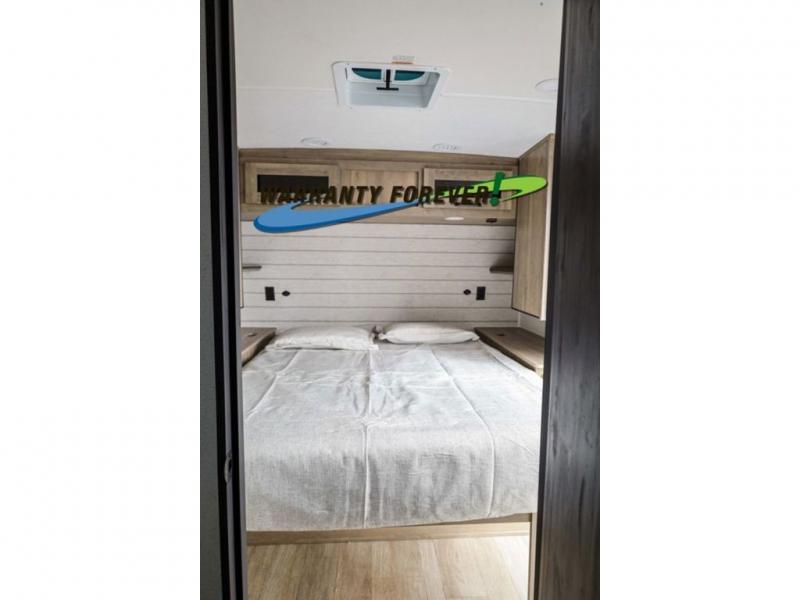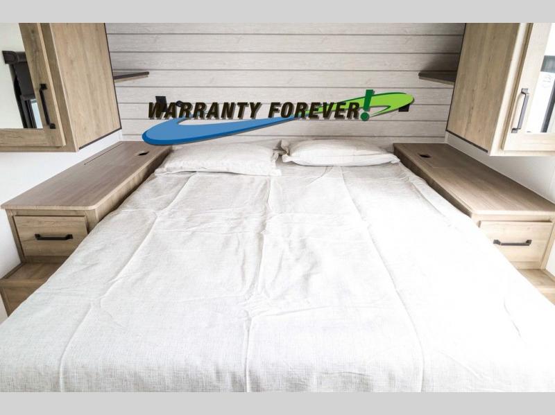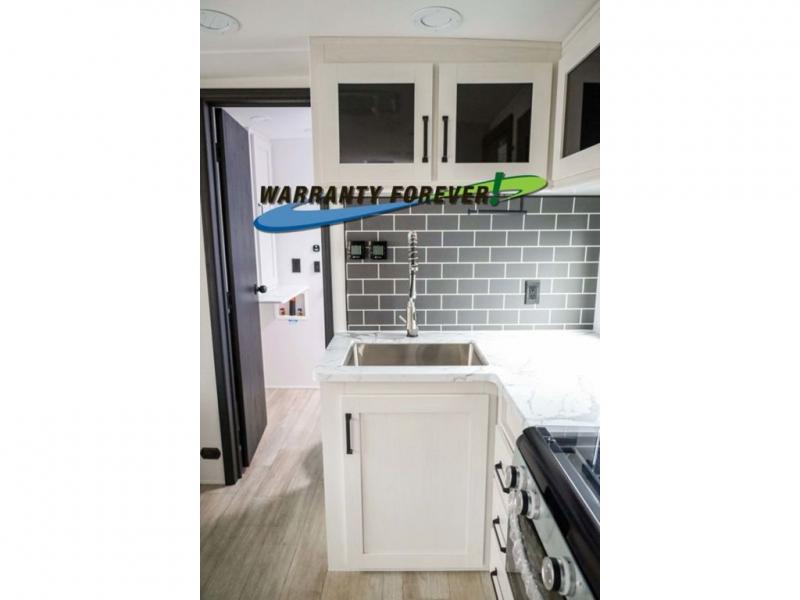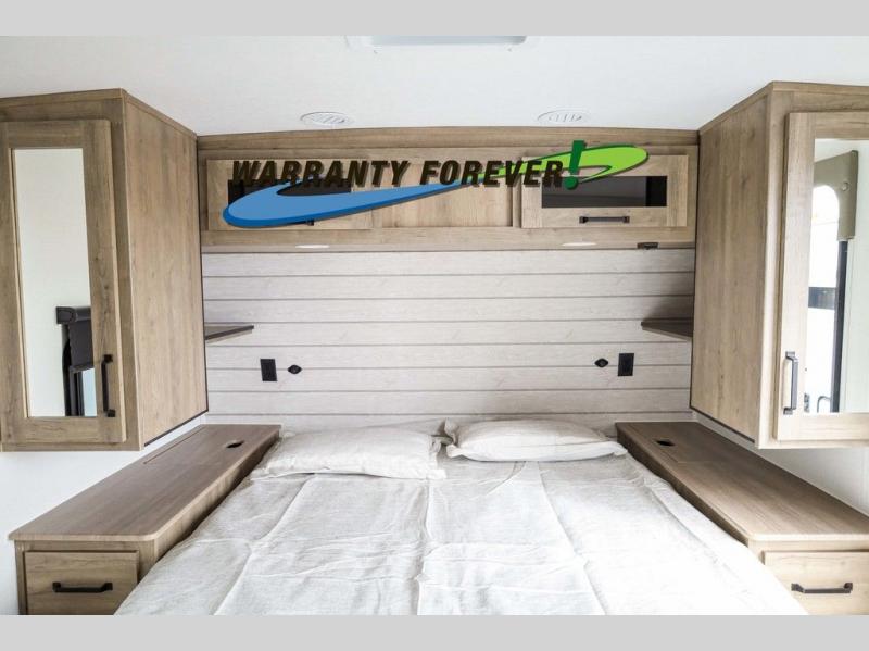 Whether you are looking for a bunkhouse, a private bedroom, or dual entry doors in your next RV, this one might just be the perfect fit with all those features! There are 45" x 72" bunk beds, each with their own wardrobe and their own private entry door, making it perfect for camping with older kids. The galley kitchen offers amenities such as a microwave, cooktop, an 11 cu. ft. refrigerator, and an L-shaped counter for preparing and serving meals. You will also find more storage, an entertainment center and a slide out sofa sleeper and booth dinette that offer more sleeping space when needed.
