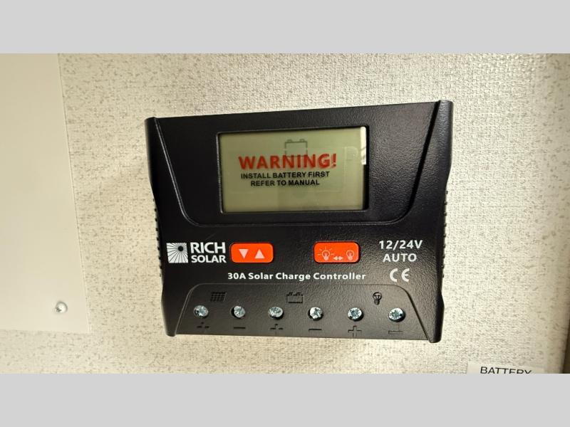 Each Solaire travel trailer by Forest River is constructed with a fully enclosed/heated underbelly for added protection against the elements, plus a fully laminated roof and rear wall for durability. The slam latch baggage doors with magnets will make it easier than ever to pack up your camp gear, and the power awning with LED lights will provide shade during the day and inviting ambiance at night. Head inside to enjoy the roller shades, smoked glass kitchen cabinet doors, stainless-steel sink, and LED lights to keep your space well lit. Some of the available options include a bedroom A/C, a Wi-Fi booster, heated holding tanks, and more!