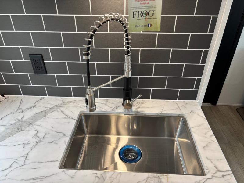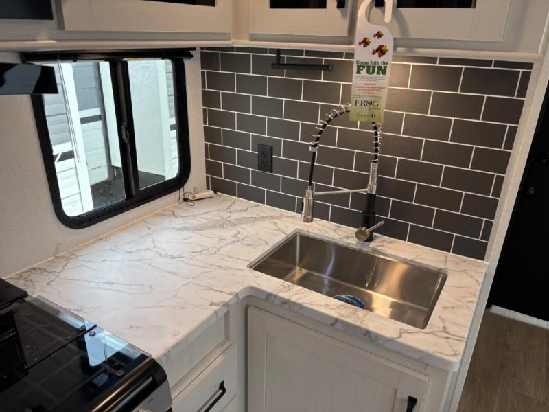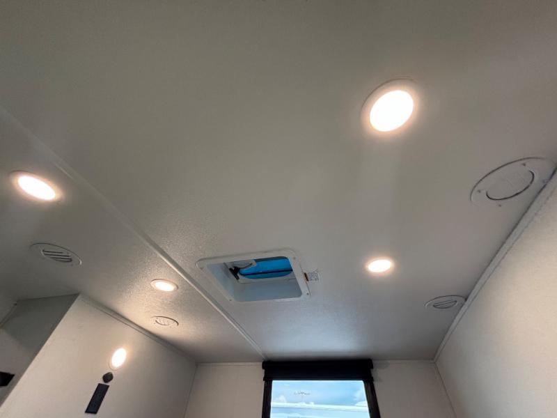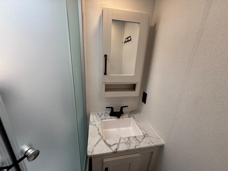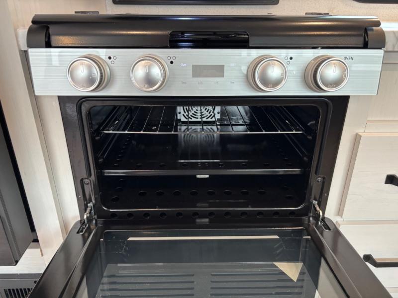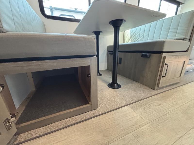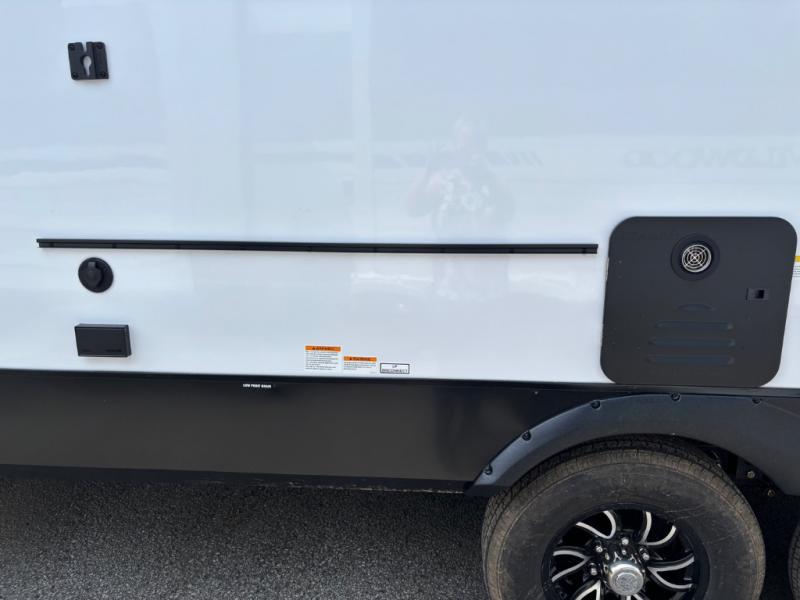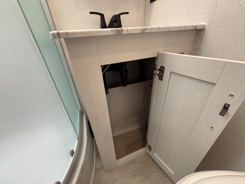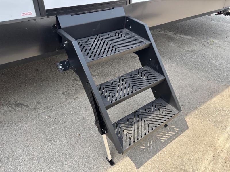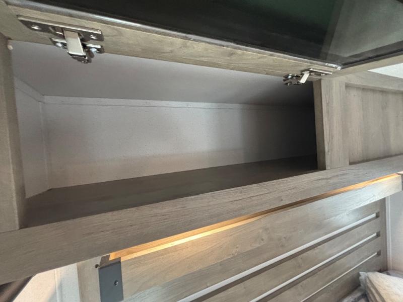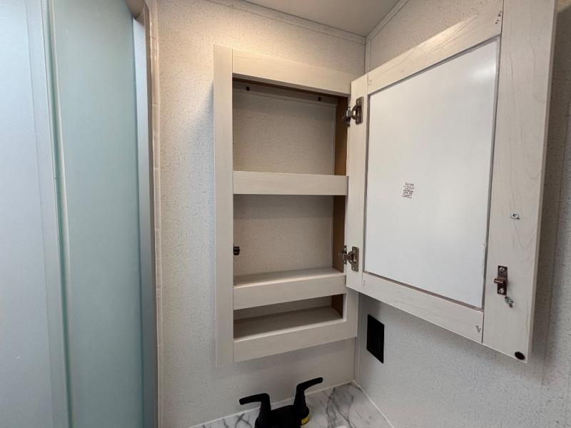 This travel trailer offers so many features that you will love, from a private bunkhouse for overnight guests to having three slide outs giving you a spacious interior throughout! The bunkhouse includes triple bunks, a double-size day bed, and storage space for your guests' things. The full bathroom is centrally located for all to access from the main living and kitchen area where you will find a slide out that includes a booth dinette and a sofa sleeper. The cook will love the kitchen amenities such as the microwave, cooktop, 11 cu. ft. refrigerator, and the L-shaped counter for preparing and serving meals. And don't overlook the front private bedroom with its king bed slide out, dresser, closet, plus a second bedroom closet with washer and dryer prep!