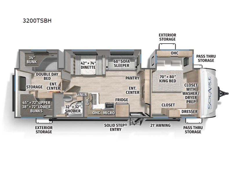 Palomino SolAire travel trailer 3200TSBH highlights: