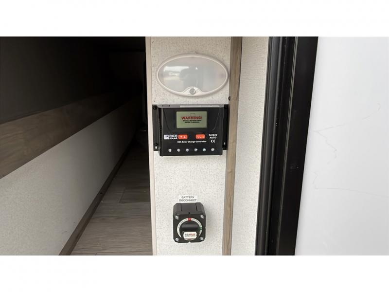 Each SolAire travel trailer by Palomino features a white gel coat exterior and an aluminum superstructure frame for lightweight towing. You will love having a power tongue jack for easy set up, plus slam latch baggage doors with magnets to make unloading easier than ever. There is also a power awning with LED lights and aluminum wheels included on the exterior. Each SolAire is constructed to last with Azdel composite, a fully laminated rear wall and roof, plus a fully enclosed and heated underbelly. The interior includes roller shades and kitchen backsplash, USB ports to keep your electronics charged, a Bluetooth stereo with speakers, and many more stand-out features!