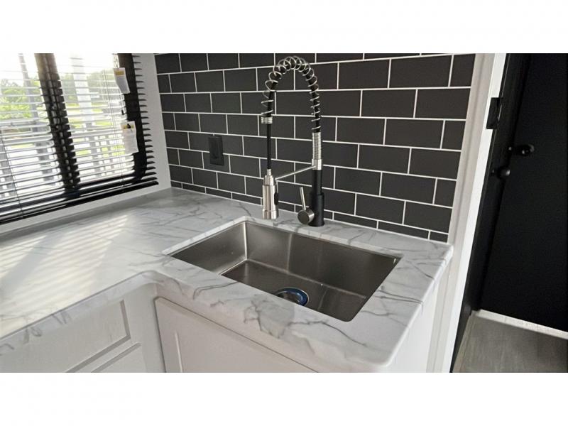 This travel trailer offers so many features that you will love, from a private bunkhouse for overnight guests to having three slide outs giving you a spacious interior throughout! The bunkhouse includes triple bunks, a double-size day bed, and storage space for your guests' things. The full bathroom is centrally located for all to access from the main living and kitchen area where you will find a slide out that includes a booth dinette and a sofa sleeper. The cook will love the kitchen amenities such as the microwave, cooktop, 11 cu. ft. refrigerator, and the L-shaped counter for preparing and serving meals. And don't overlook the front private bedroom with its king bed slide out, dresser, closet, plus a second bedroom closet with washer and dryer prep!