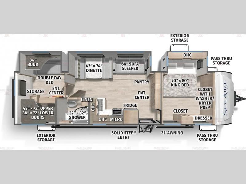 Forest River Solaire travel trailer 3200TSBH highlights: