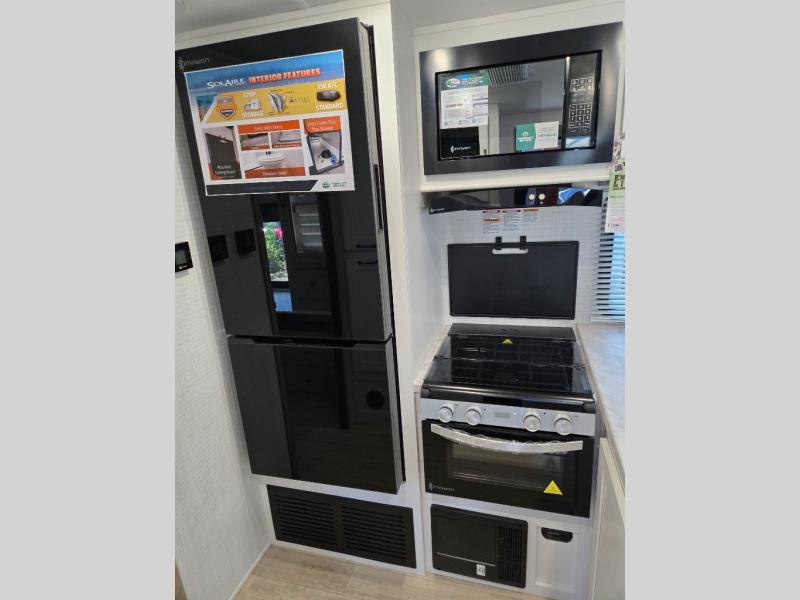 Each SolAire travel trailer by Palomino features a white gel coat exterior and an aluminum superstructure frame for lightweight towing. You will love having a power tongue jack for easy set up, plus slam latch baggage doors with magnets to make unloading easier than ever. There is also a power awning with LED lights and aluminum wheels included on the exterior. Each SolAire is constructed to last with Azdel composite, a fully laminated rear wall and roof, plus a fully enclosed and heated underbelly. The interior includes roller shades and kitchen backsplash, USB ports to keep your electronics charged, a Bluetooth stereo with speakers, and many more stand-out features!