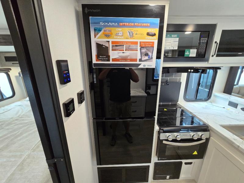 Each SolAire travel trailer by Palomino features a white gel coat exterior and an aluminum superstructure frame for lightweight towing. You will love having a power tongue jack for easy set up, plus slam latch baggage doors with magnets to make unloading easier than ever. There is also a power awning with LED lights and aluminum wheels included on the exterior. Each SolAire is constructed to last with Azdel composite, a fully laminated rear wall and roof, plus a fully enclosed and heated underbelly. The interior includes roller shades and kitchen backsplash, USB ports to keep your electronics charged, a Bluetooth stereo with speakers, and many more stand-out features!
