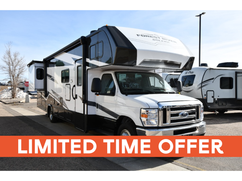Each one of these Forest River Solera Class C gas and diesel motorhomes proclaim the style of a new generation! There is a convenient keyless entry, a backup and side view camera system, and a 10" in-dash touch screen Apple Carplay/Android Auto radio. The Ford E350/Chevy 3500, Ford E450 or Mercedes-Benz Sprinter 3500 chassis also help with the smooth ride. Each model includes aluminum framed laminated sidewalls, superlite composite substrate, and a gel coat exterior fiberglass for added durability. Inside, you will enjoy the MCD roller shades, residential style furniture with Fortress stain resistant fabrics, soft touch self-closing drawer guides, and many more comforts. And you can stay connected where ever you go with the Winegard Air 360+ antenna with Gateway 4G WiFi capability.