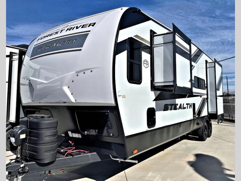 Each Stealth toy hauler by Forest River is off-road approved thanks to their solid foundation and luxury features! The versatile garage areas can be used for both toy storage plus seating and sleeping spaces. There is full bath and kitchen amenities to make camping easier than ever, and you'll find ample storage space for food, gear, personal belongings and more. Each fifth wheel and travel trailer also features generator prep if you'd like to further customize your Stealth toy hauler!