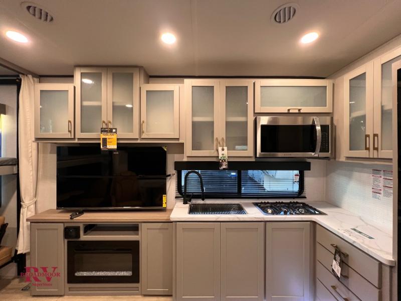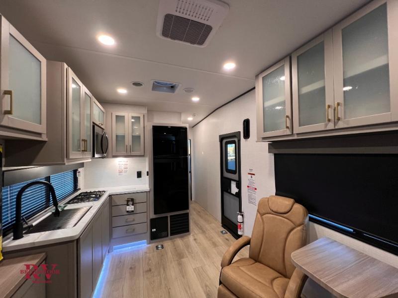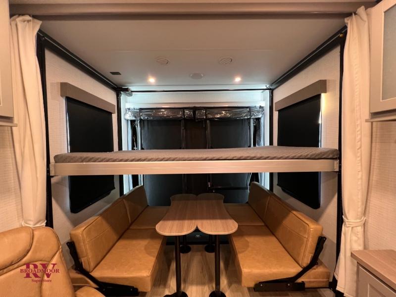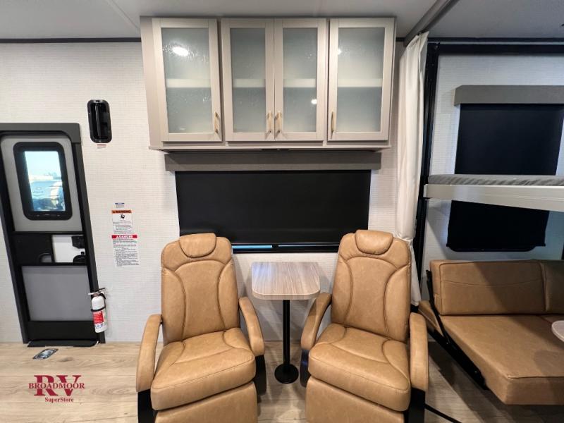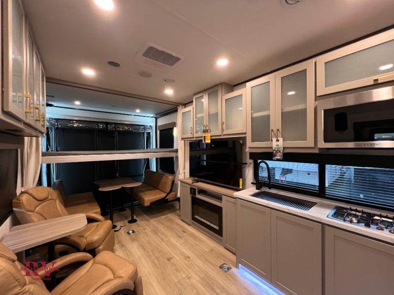 Optional Equipment Installed On This Unit: Best In Class Value Package, Climate Comfort Package, 6.0 NPS Generator, 50AMP Service, 2nd 15K AC, 55" LED Smart TV, Ramp Door Patio System, Ultra Cold Weather Heated Holding Tank, 600 W Solar