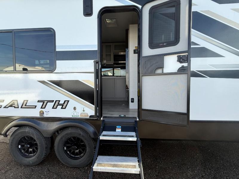 Each Stealth toy hauler by Forest River is off-road approved thanks to their solid foundation and luxury features! The versatile garage areas can be used for both toy storage plus seating and sleeping spaces. There is full bath and kitchen amenities to make camping easier than ever, and you'll find ample storage space for food, gear, personal belongings and more. Each fifth wheel and travel trailer also features generator prep if you'd like to further customize your Stealth toy hauler!