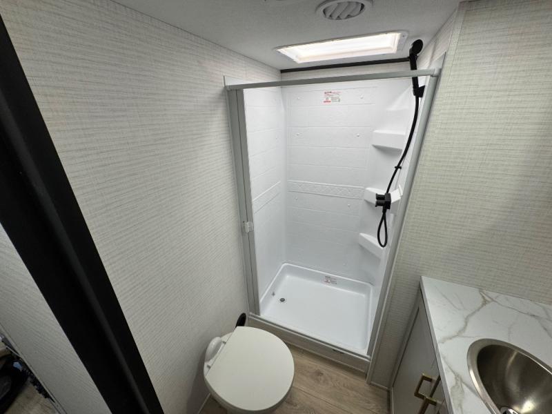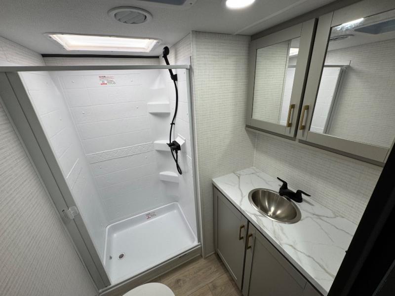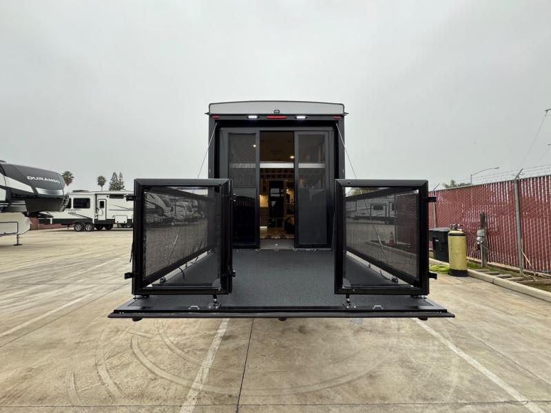 The rear ramp transforms into a full patio deck with patio doors, creating the perfect outdoor hangout. Built on an off-road-approved chassis with durable construction, the Stealth 2800 is ideal for riders, campers, and adventure-driven families.