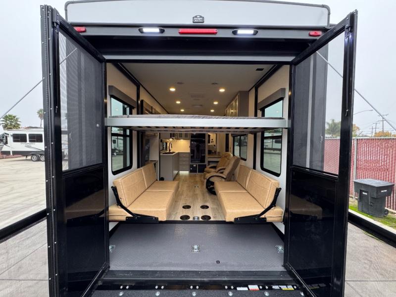 The Stealth 2800 offers rugged capability and residential comfort in a highly versatile toy hauler. With a 15' 7" cargo garage, generator, and 600w solar w/ inverter, it’s ready for true off-grid camping. The garage converts into extra living and sleeping space with a drop-down bed, pass-thru dinette, and dual lounge chairs.