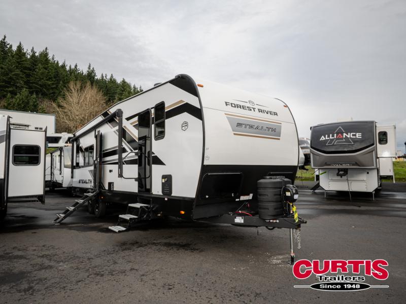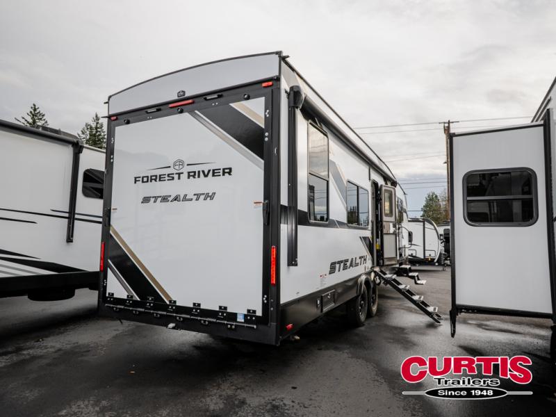 Each Stealth toy hauler by Forest River is off-road approved thanks to their solid foundation and luxury features! The versatile garage areas can be used for both toy storage plus seating and sleeping spaces. There is full bath and kitchen amenities to make camping easier than ever, and you'll find ample storage space for food, gear, personal belongings and more. Each fifth wheel and travel trailer also features generator prep if you'd like to further customize your Stealth toy hauler!