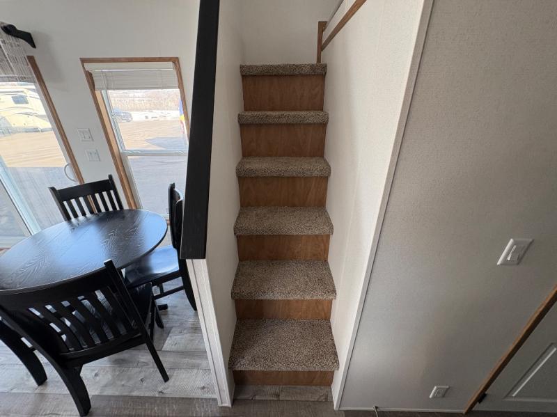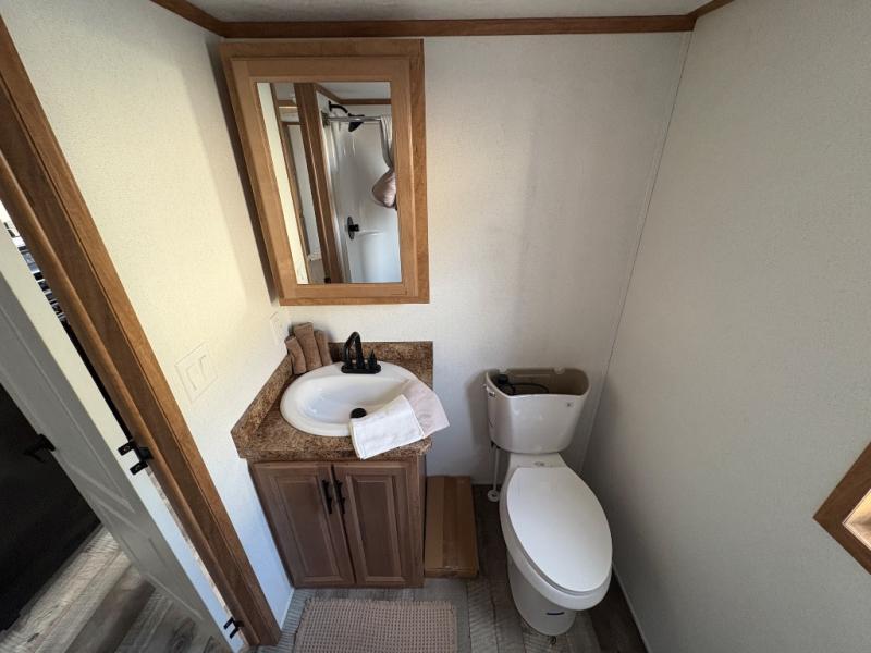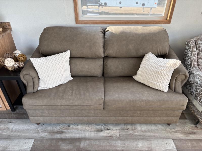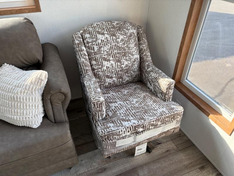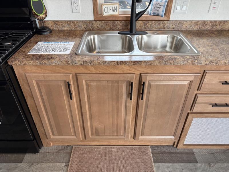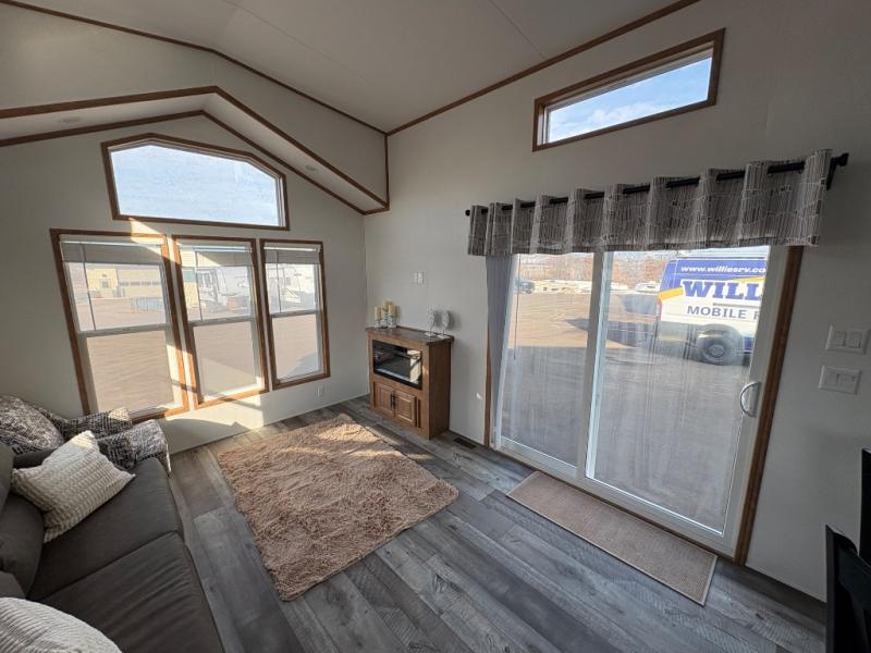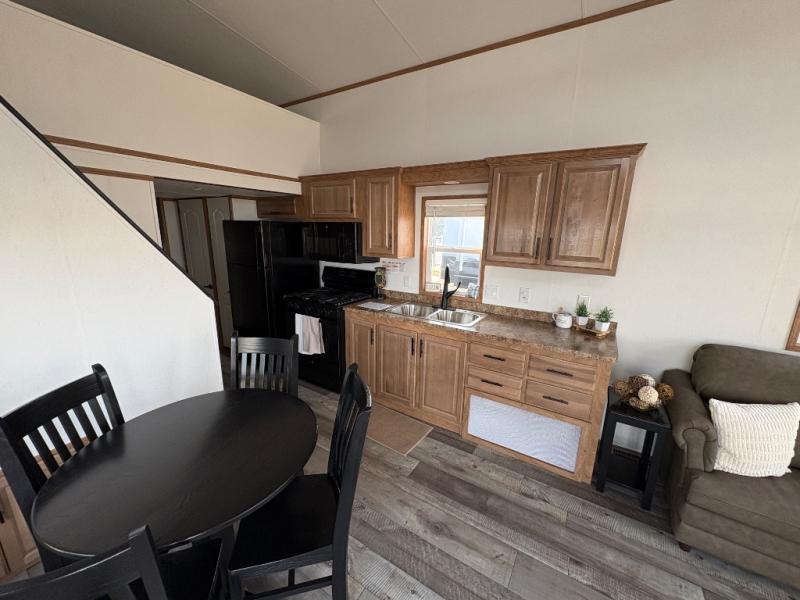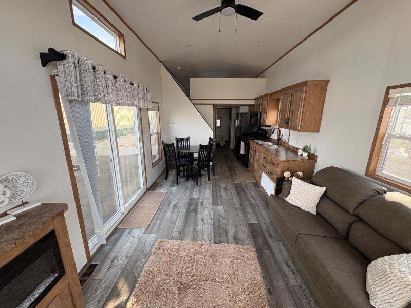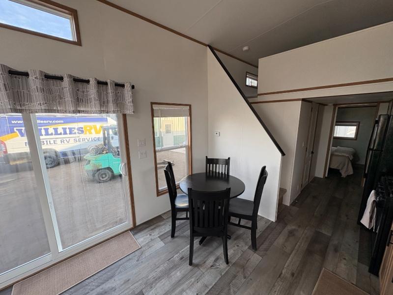 Step inside this park model and see just how much fun you will have on your next getaway! It features a rear private bedroom with a queen-sized bed for you to enjoy a good night's rest, as well as dual closets and drawers to keep your belongings organized. Just outside the bedroom, there is a full bathroom that is equipped with everything you will need to keep clean and refreshed each day. You can whip up your favorite meals easily with the four-burner cooktop and then dine at the dinette table with chairs! The swivel chair and sofa will provide a place to relax, and the overhead loft layout will be great for additional sleeping space or storage!