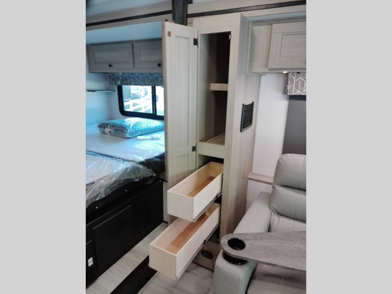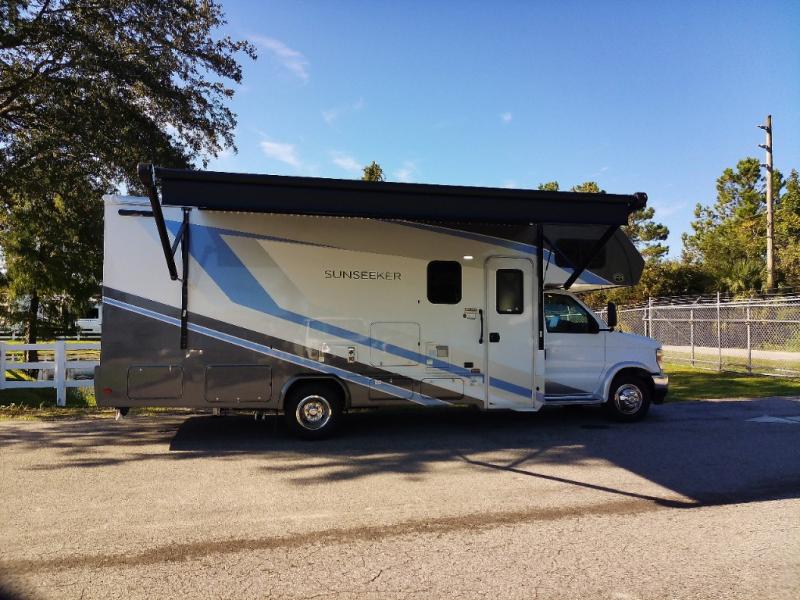 With any Sunseeker Classic Class C gas motorhome by Forest River, you will enjoy more features and quality construction at a great value! Each model comes standard with a fiberglass roof and 2" aluminum framed laminated sidewalls for maximum durability. The Winegard Air 360+ digital antenna is your all-in-one solution for your internet, TV, and FM signal needs, and you have Gateway 4G Wi-Fi capability too. The exterior has an outside shower, heated/enclosed tanks, Rotocast storage compartments, and a power awning with an LED light strip to name a few conveniences. Each drive will be made easy thanks to a 10" touchscreen CarPlay/Android radio with USB and Bluetooth, backup camera/side view cameras with a 3-way monitor, and Ultraleather seating for added comfort. You'll also love the black out roller shades, soft touch self-closing drawer guides, oxygen-infused shower head with a flexible extension, and many more interior comforts!