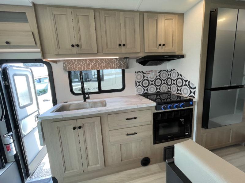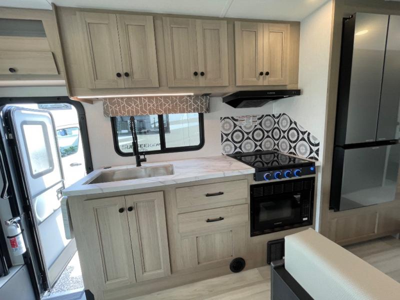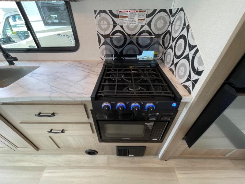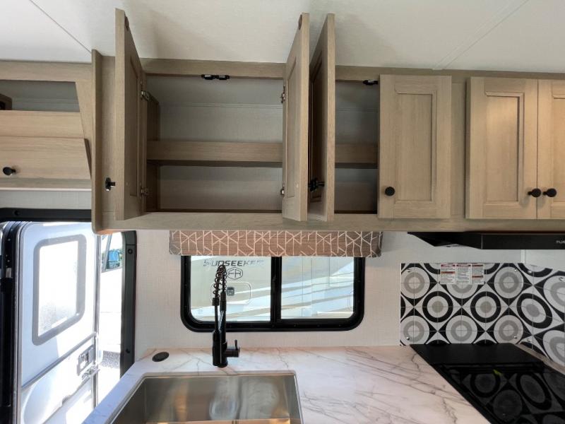 This Sunseeker LE Class C gas motorhome will allow you to travel to other states with your favorite people beside you! You can take a moment to enjoy a fresh cup of coffee in the morning while sitting at the booth dinette or on the sofa, or you can spend a little extra time creating a hearty breakfast in the kitchen on the recessed three-burner range. The 10.7-cubic foot refrigerator will store your cheese and milk, and the convection microwave will heat up leftovers with ease. The separated bathroom leads into the rear bedroom where you will find an RV queen bed with wardrobes on either side, and you can also head outside to enjoy the 15' 6" electric awning with LED lights before bed.