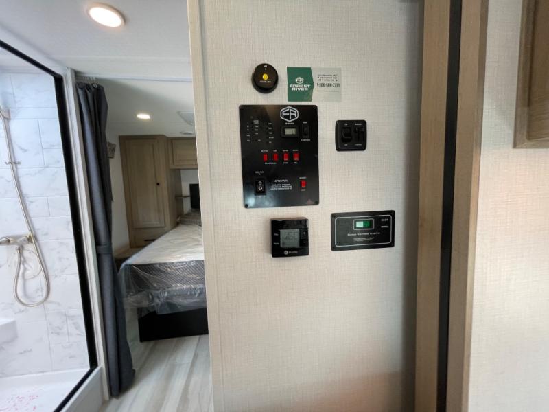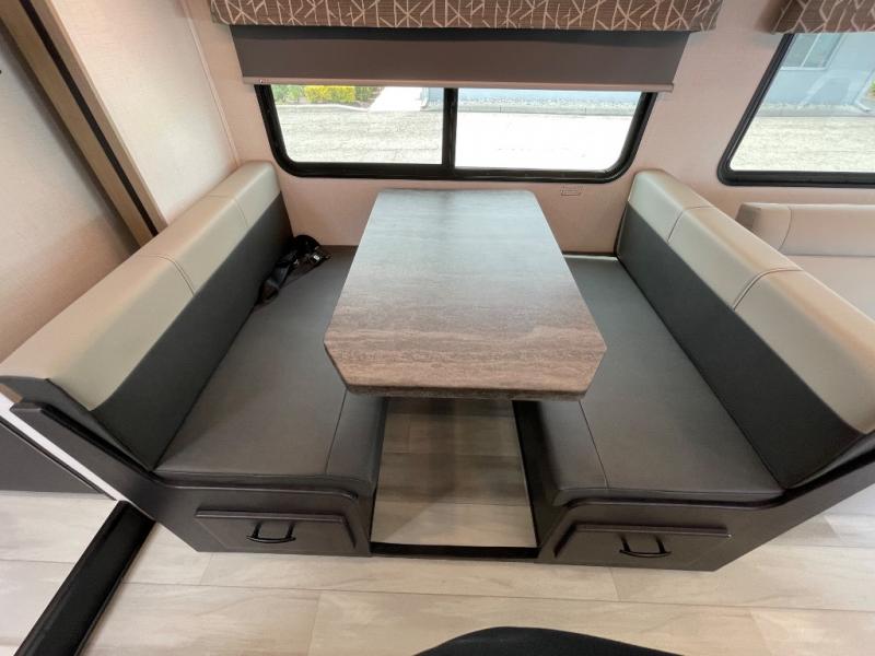 Each Forest River Sunseeker LE Class C gas motorhome comes with the LE Premier Package for your benefit! This package includes great features like backup/sideview cameras with rearview mirror monitor, a fiberglass front cap, an in-dash premium sound system with Bluetooth, a Winegard Air 360+ antenna with preparation for Gateway 4G Wi-Fi, toppers for the slide outs, and a 15,000 BTU ceiling-ducted, ultra-quiet roof air with heat pump. All of these premium features rest on a Superlite composite substrate, 2"-thick gel-coat sidewalls with lightweight composite waterproof material, block-foam insulation, and a fiberglass roof. There is a satellite/cable connection, a 30,000 BTU furnace, a Maxx Air multi-speed power fan, and black-out roller shades.