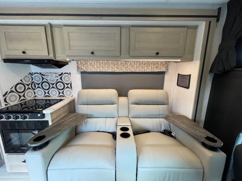 With any Sunseeker Classic Class C gas motorhome by Forest River, you will enjoy more features and quality construction at a great value! Each model comes standard with a fiberglass roof and 2" aluminum framed laminated sidewalls for maximum durability. The Winegard Air 360+ digital antenna is your all-in-one solution for your internet, TV, and FM signal needs, and you have Gateway 4G Wi-Fi capability too. The exterior has an outside shower, heated/enclosed tanks, Rotocast storage compartments, and a power awning with an LED light strip to name a few conveniences. Each drive will be made easy thanks to a 10" touchscreen CarPlay/Android radio with USB and Bluetooth, backup camera/side view cameras with a 3-way monitor, and Ultraleather seating for added comfort. You'll also love the black out roller shades, soft touch self-closing drawer guides, oxygen-infused shower head with a flexible extension, and many more interior comforts!