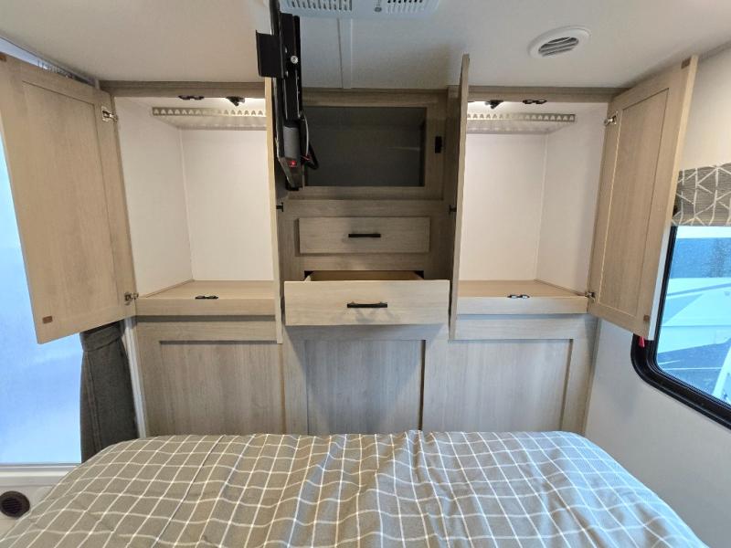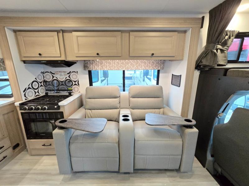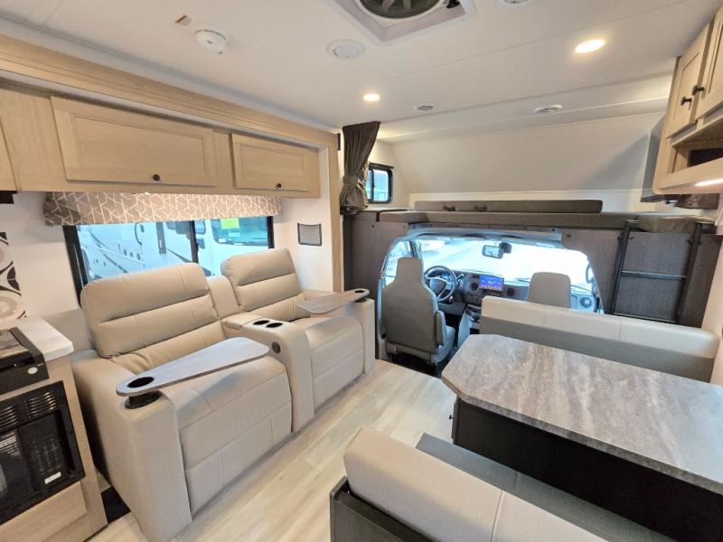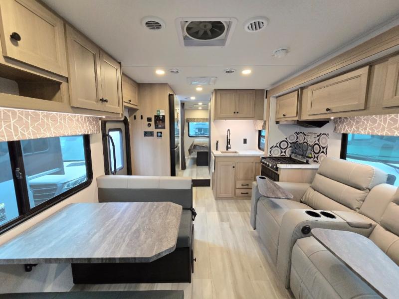 With any Sunseeker Class C gas motorhome by Forest River, you will enjoy more features and quality construction at a great value! Each model comes standard with a fiberglass roof and 2" aluminum framed laminated sidewalls for maximum durability. The Winegard Air 360+ digital antenna is your all-in-one solution for your internet, TV, and FM signal needs, and you have Gateway 4G Wi-Fi capability too. The exterior has an outside shower, heated/enclosed tanks, Rotocast storage compartments, and a power awning with an LED light strip to name a few conveniences. Each drive will be made easy thanks to a 10" touchscreen CarPlay/Android radio with USB and Bluetooth, backup camera/side view cameras with a 3-way monitor, and Ultraleather seating for added comfort. You'll also love the black out roller shades, soft touch self-closing drawer guides, oxygen-infused shower head with a flexible extension, and many more interior comforts!