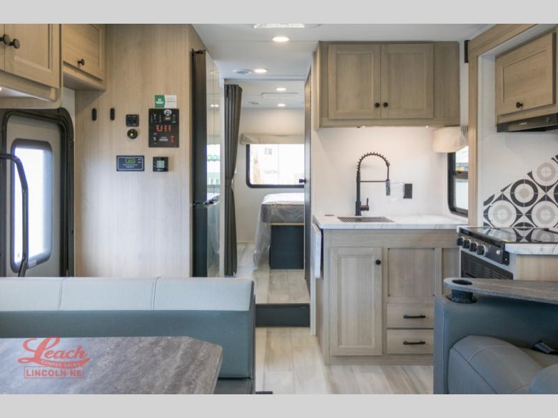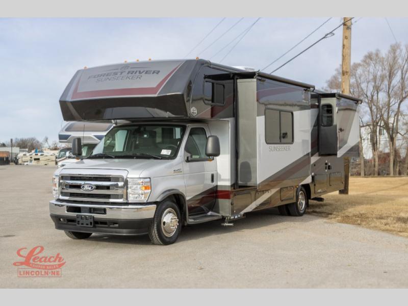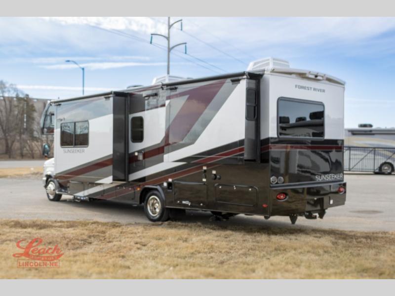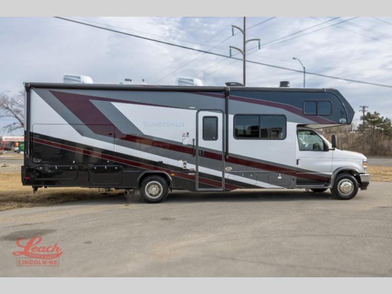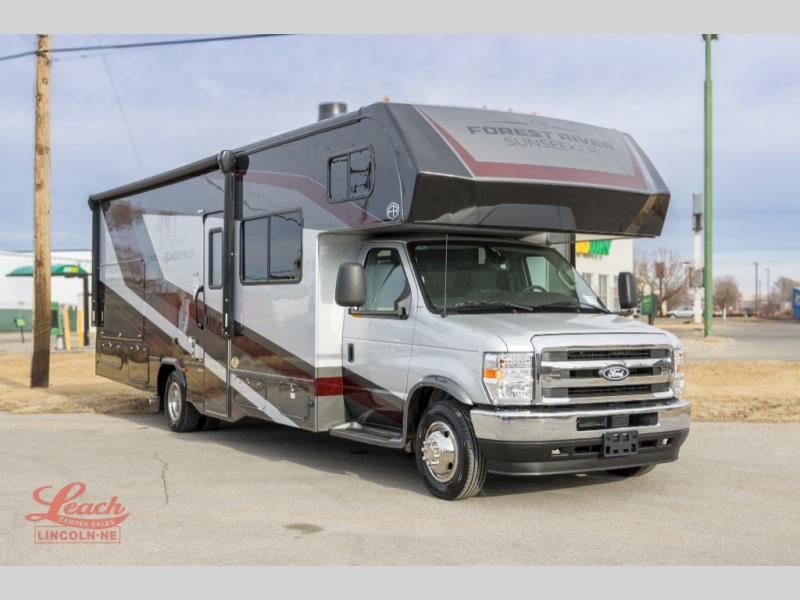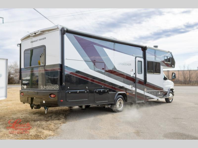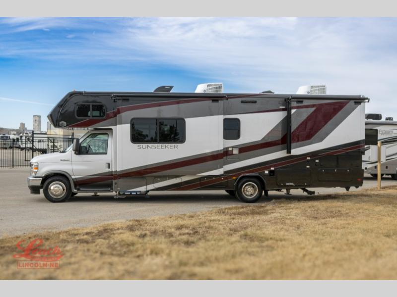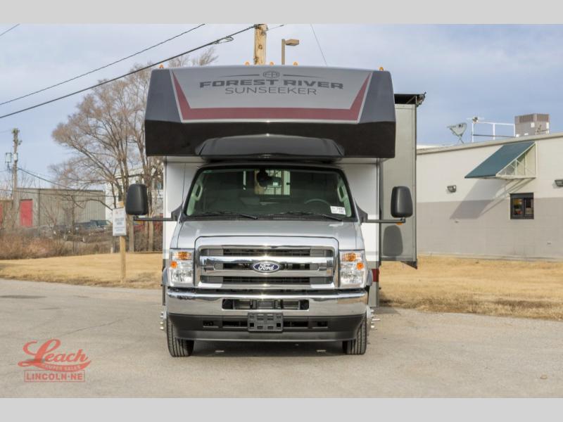 With any Sunseeker Class C gas motorhome by Forest River, you will enjoy more features and quality construction at a great value! Each model comes standard with a fiberglass roof and 2" aluminum framed laminated sidewalls for maximum durability. The Winegard Air 360+ digital antenna is your all-in-one solution for your internet, TV, and FM signal needs, and you have Gateway 4G Wi-Fi capability too. The exterior has an outside shower, heated/enclosed tanks, Rotocast storage compartments, and a power awning with an LED light strip to name a few conveniences. Each drive will be made easy thanks to a 10" touchscreen CarPlay/Android radio with USB and Bluetooth, backup camera/side view cameras with a 3-way monitor, and Ultraleather seating for added comfort. You'll also love the black out roller shades, soft touch self-closing drawer guides, oxygen-infused shower head with a flexible extension, and many more interior comforts!