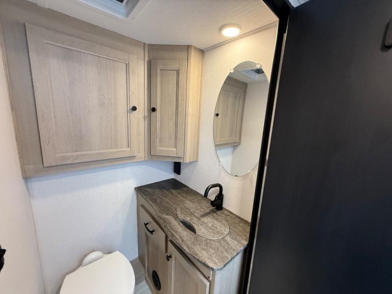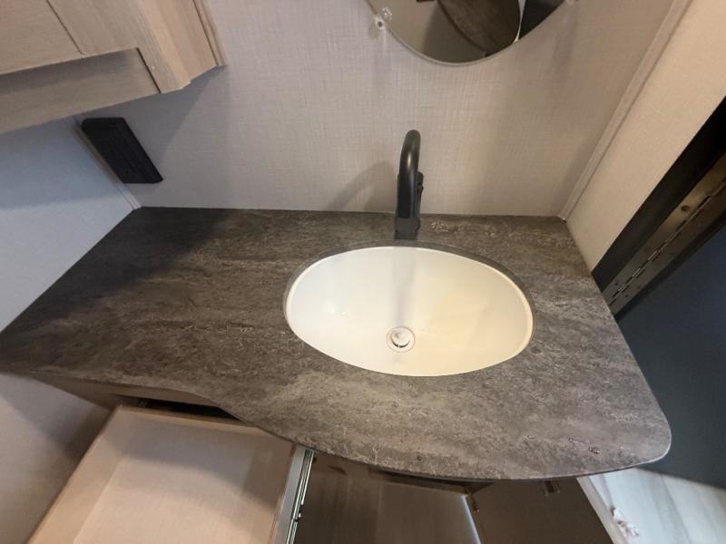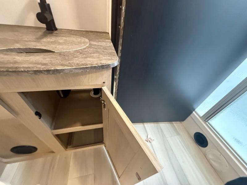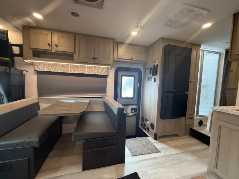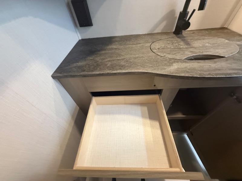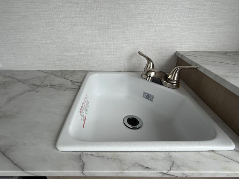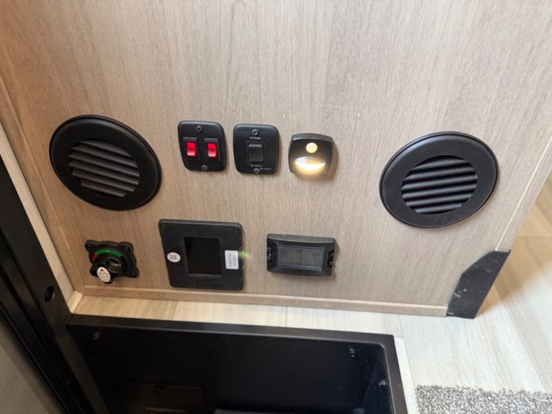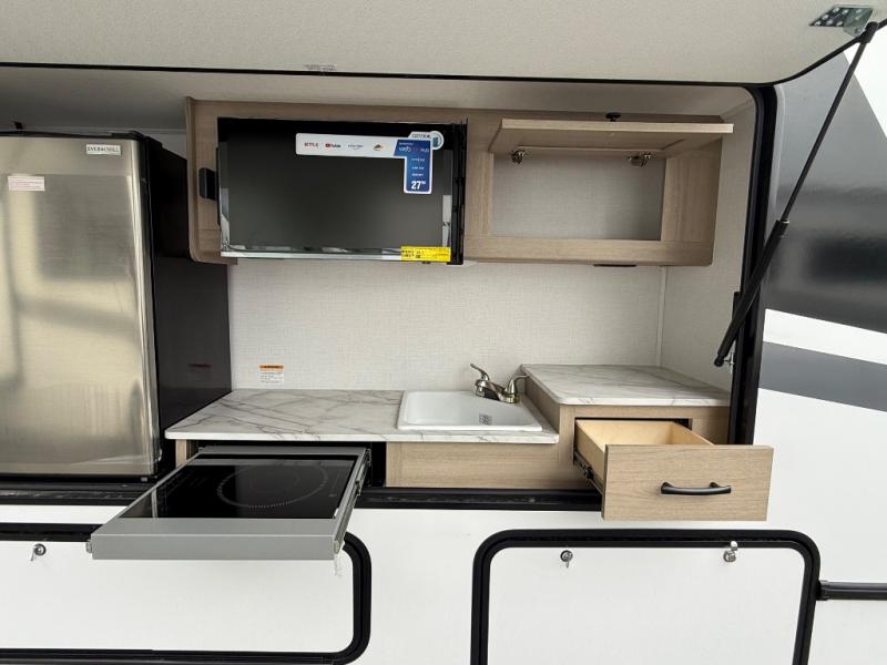 Exterior Amenities: Features an outside kitchen with a refrigerator and sink, a 16' power awning with LED lighting, and pass-through storage compartments for all your gear.