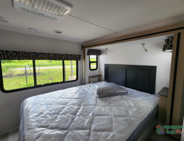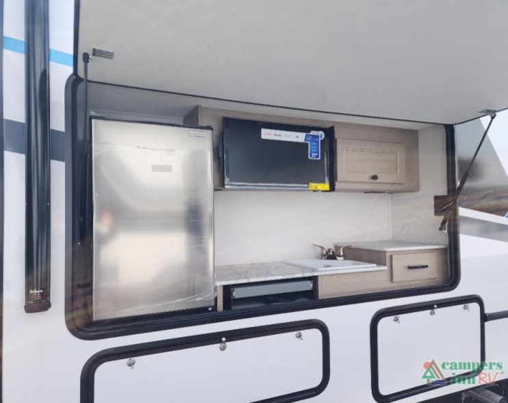 Outside Kitchen, Sofa, 2 TVs, Bunk Over Cab, Queen Bed Slide - Campers Inn RV of Louisville 812-282-7718