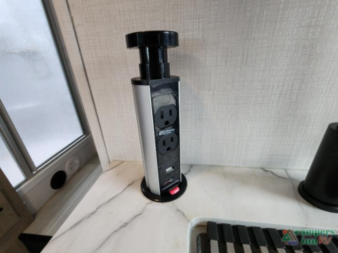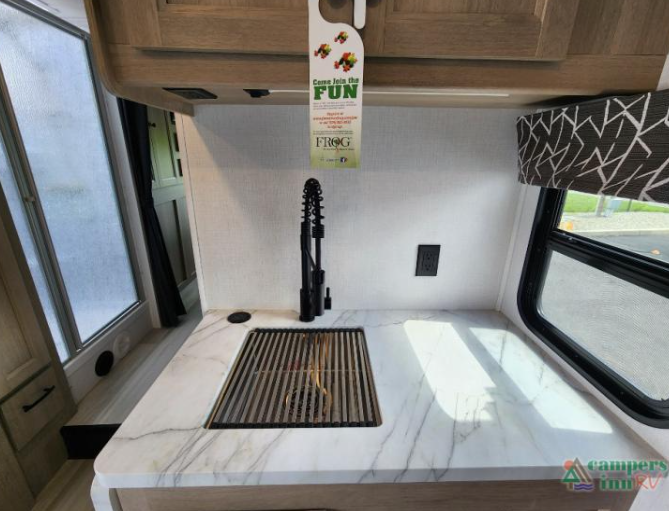 Stay connected wherever you go with the Winegard Air 360+ digital antenna for internet, TV, and FM signals, along with 4G Wi-Fi capability. Inside, details like blackout roller shades, soft-close drawers, and an oxygen-infused showerhead elevate comfort to a whole new level.