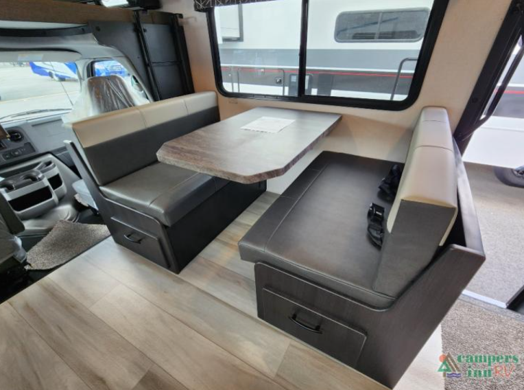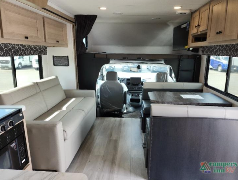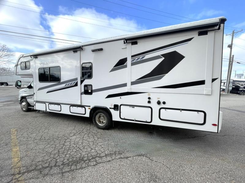 Step inside and experience home-like comfort with the Sunseeker Classic’s thoughtful layout. Relax on the plush sofa or gather around the booth dinette for a meal, a card game, or an evening chat. The large windows and well-placed lighting make the interior bright and welcoming, while the two included TVs provide endless entertainment for movie nights or rainy-day downtime.
