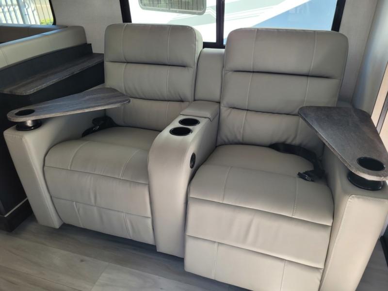 With any Sunseeker Class C gas motorhome by Forest River, you will enjoy more features and quality construction at a great value! Each model comes standard with a fiberglass roof and 2" aluminum framed laminated sidewalls for maximum durability. The Winegard Air 360+ digital antenna is your all-in-one solution for your internet, TV, and FM signal needs, and you have Gateway 4G Wi-Fi capability too. The exterior has an outside shower, heated/enclosed tanks, Rotocast storage compartments, and a power awning with an LED light strip to name a few conveniences. Each drive will be made easy thanks to a 10" touchscreen CarPlay/Android radio with USB and Bluetooth, backup camera/side view cameras with a 3-way monitor, and Ultraleather seating for added comfort. You'll also love the black out roller shades, soft touch self-closing drawer guides, oxygen-infused shower head with a flexible extension, and many more interior comforts!