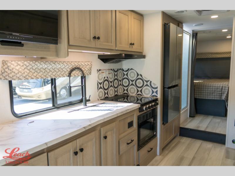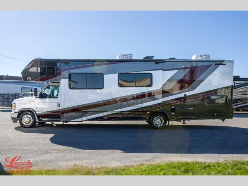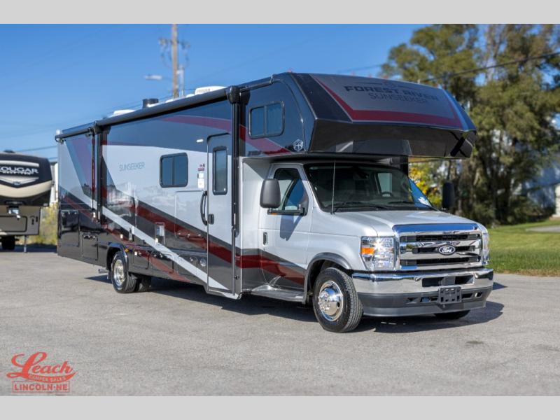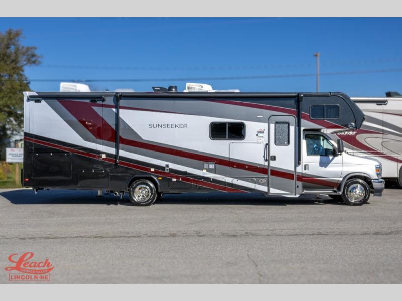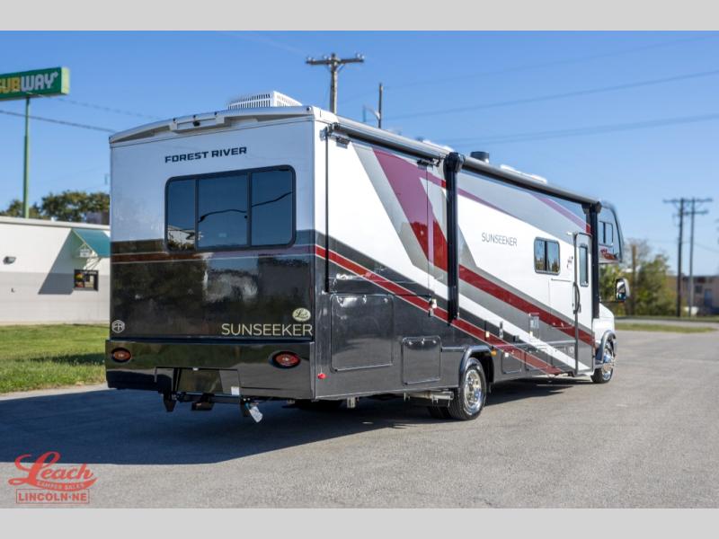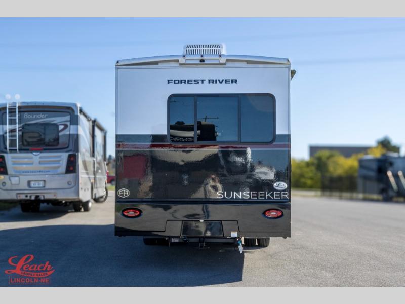 With any Sunseeker Class C gas motorhome by Forest River, you will enjoy more features and quality construction at a great value! Each model comes standard with a fiberglass roof and 2" aluminum framed laminated sidewalls for maximum durability. The Winegard Air 360+ digital antenna is your all-in-one solution for your internet, TV, and FM signal needs, and you have Gateway 4G Wi-Fi capability too. The exterior has an outside shower, heated/enclosed tanks, Rotocast storage compartments, and a power awning with an LED light strip to name a few conveniences. Each drive will be made easy thanks to a 10" touchscreen CarPlay/Android radio with USB and Bluetooth, backup camera/side view cameras with a 3-way monitor, and Ultraleather seating for added comfort. You'll also love the black out roller shades, soft touch self-closing drawer guides, oxygen-infused shower head with a flexible extension, and many more interior comforts!